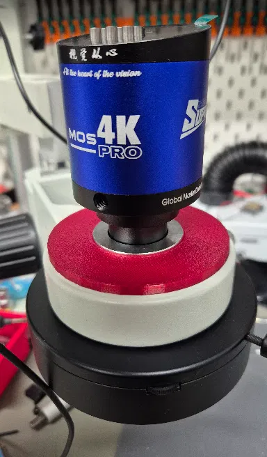 Adapter đơn giản giúp gắn kính hiển vi kỹ thuật số lên tay tiêu chuẩn 76mm, dùng ngàm giữ lens 40mm (ví dụ MOS4k Pro) và có phần nối dài để lắp ring light tiêu chuẩn. Khuyên adapter 32 segments để có mặt phẳng bắt vít.