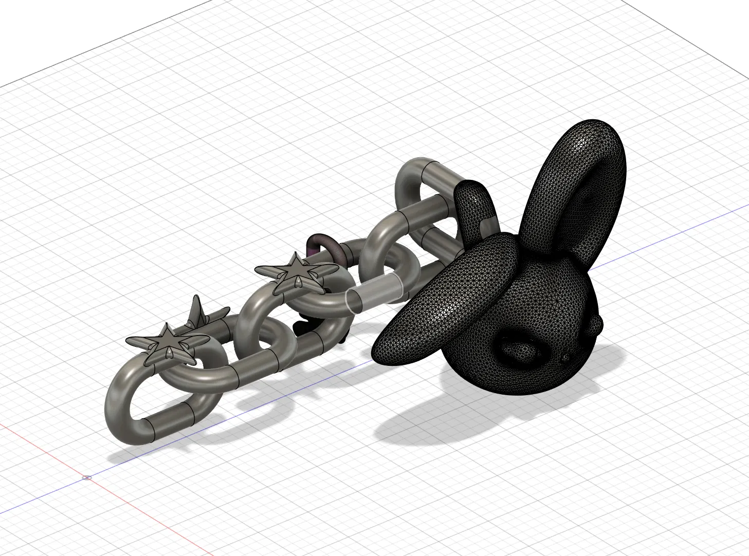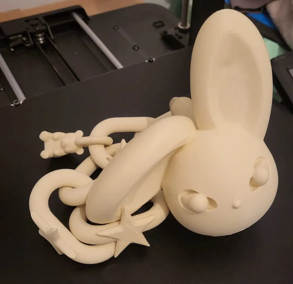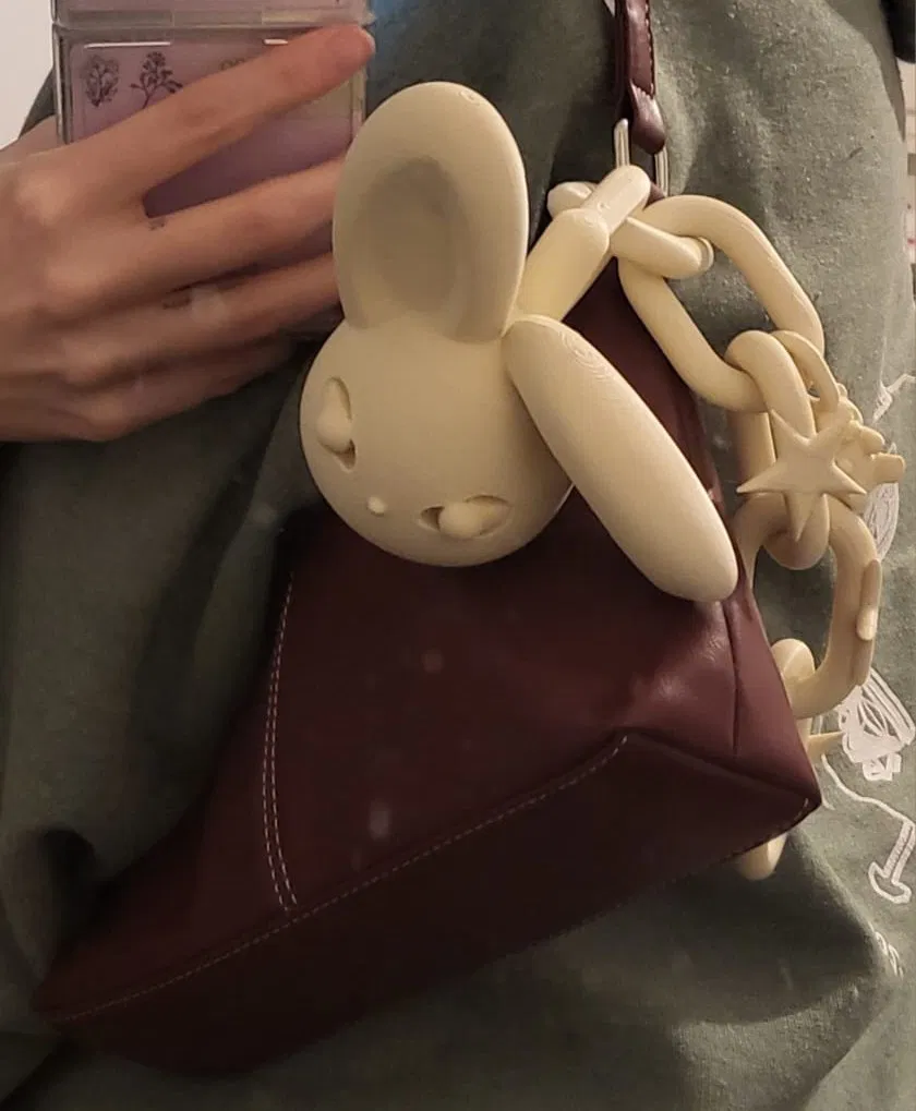 Mẫu móc khóa/charm treo túi hình thỏ phong cách Y2K siêu dễ thương. Mình mới tập 3D modeling và 3D printing nên thiết kế có thể chưa tối ưu; rất mong bạn góp ý để cải thiện.
