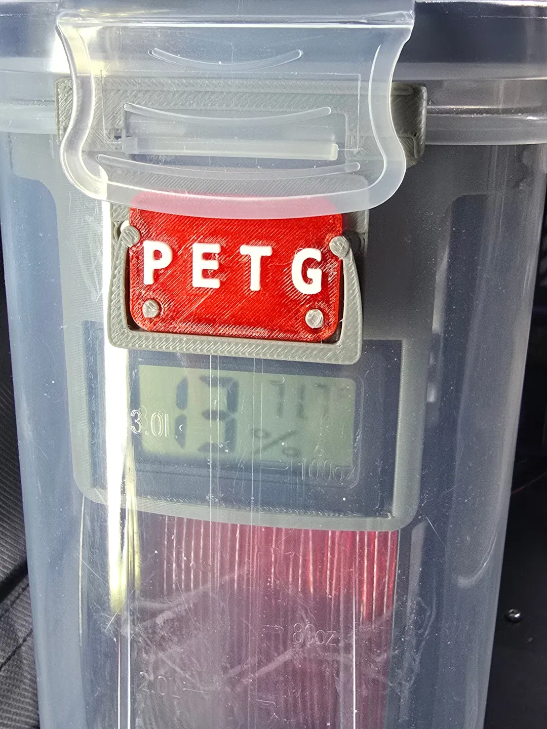 Một cái holder đơn giản để gắn hygrometer vào các drybox dạng hộp đựng ngũ cốc của mình. Dùng được cho hộp dẫn filament đi lên hoặc đi xuống.