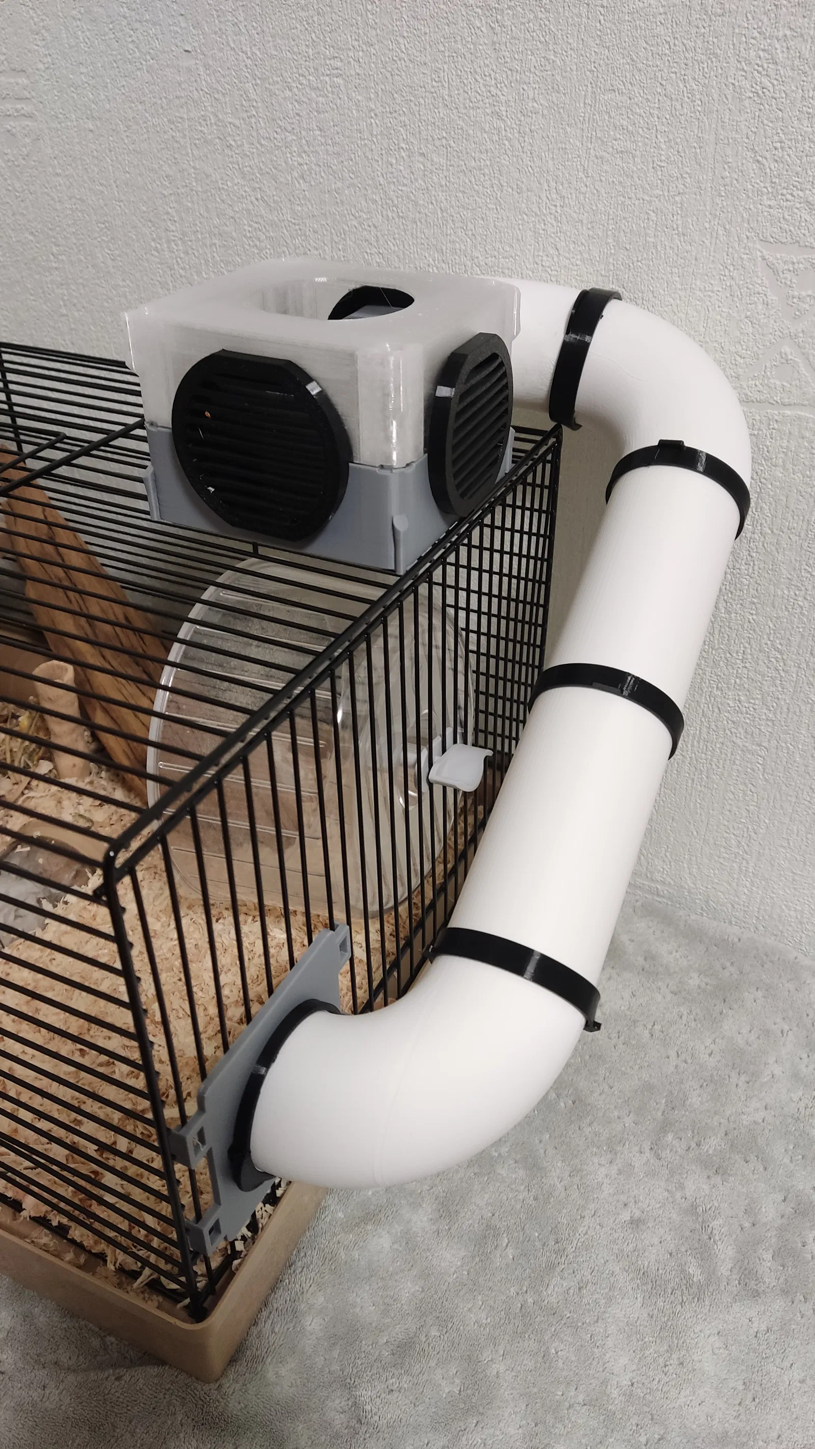 Chuồng hamster nhỏ quá hả? Yên tâm, gắn thêm tầng nữa là xong. Mẫu này có đế nối để gắn vào chuồng, ống tube và ron làm kín, giúp hamster có thêm không gian vui chơi.