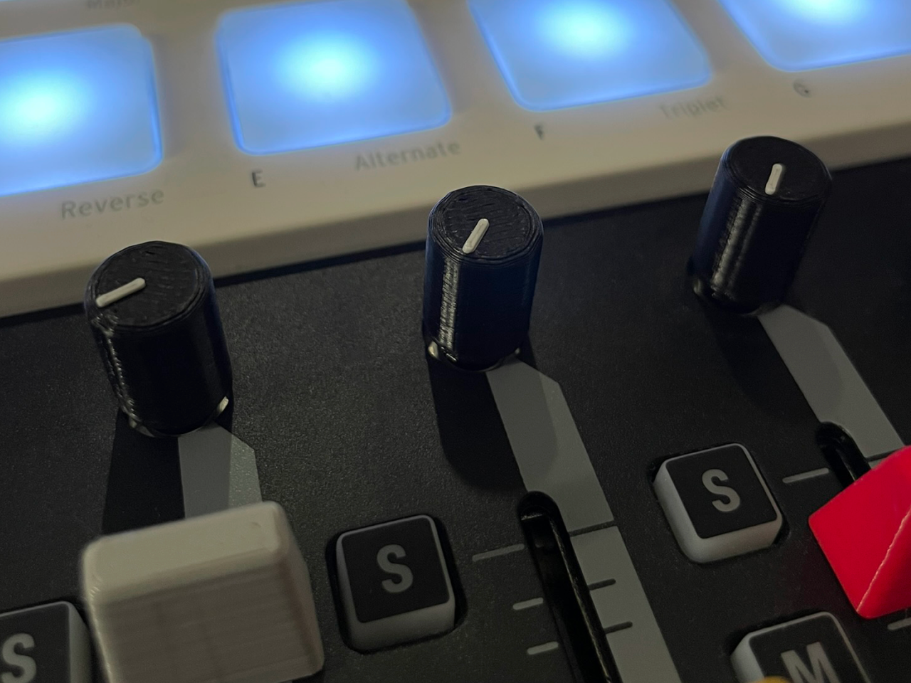 Núm vặn custom có vạch chỉ cho KORG NANO KONTROL 1 & 2, giúp nhìn nhanh mức tham số đã map khi diễn live. Indicator rõ trên sân khấu tối, núm to/cao hơn giúp vặn mượt và chính xác hơn.