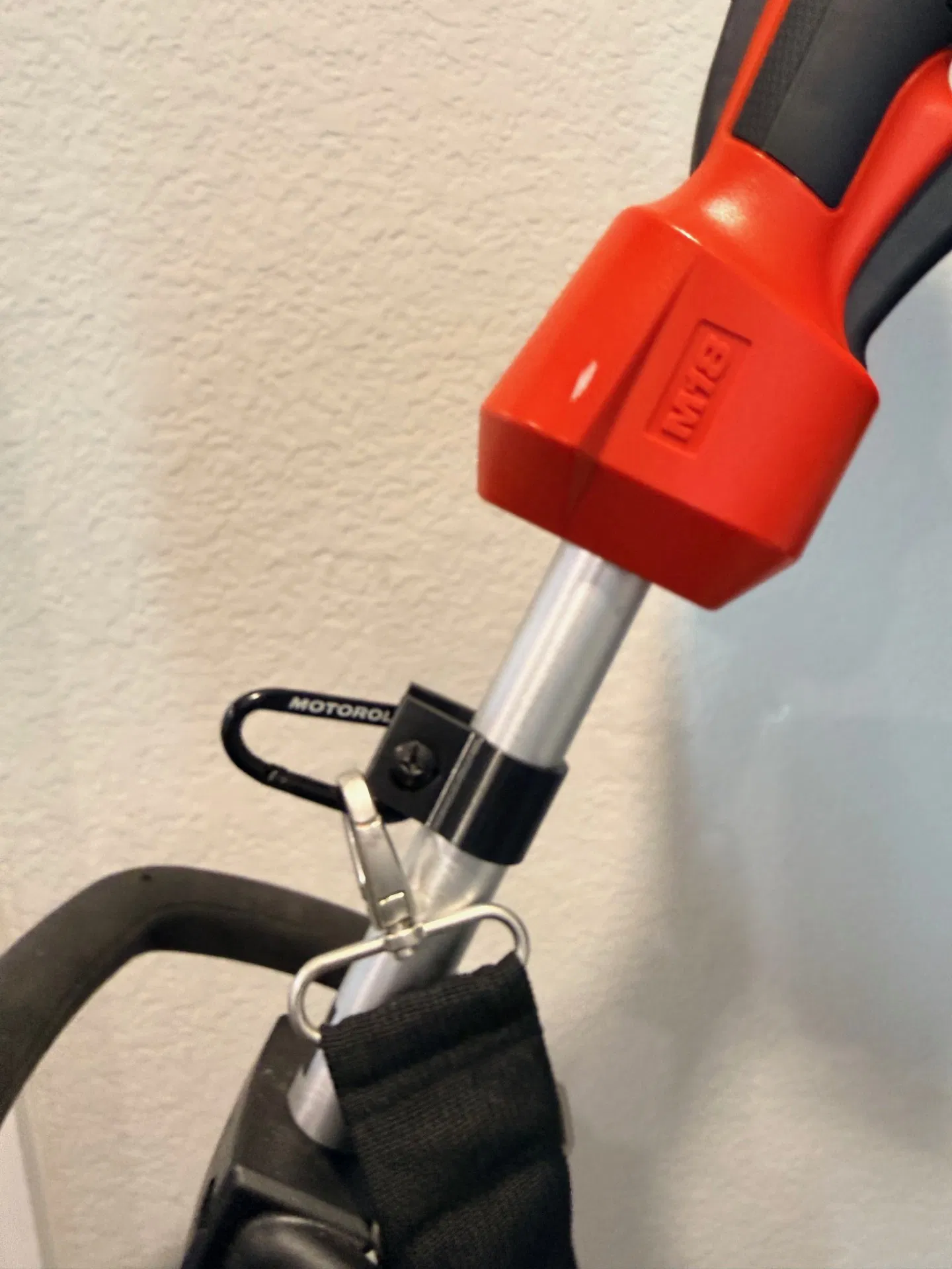 Clip thay thế để gắn dây đeo vai cho Milwaukee Edge Trimmer. Clip đi kèm dây đeo bị không vừa nên làm mẫu này để thay. In PETG rất ổn, lắp vừa và dùng chắc chắn.