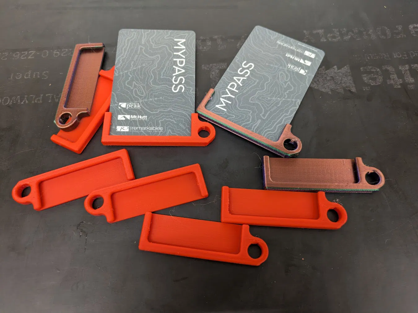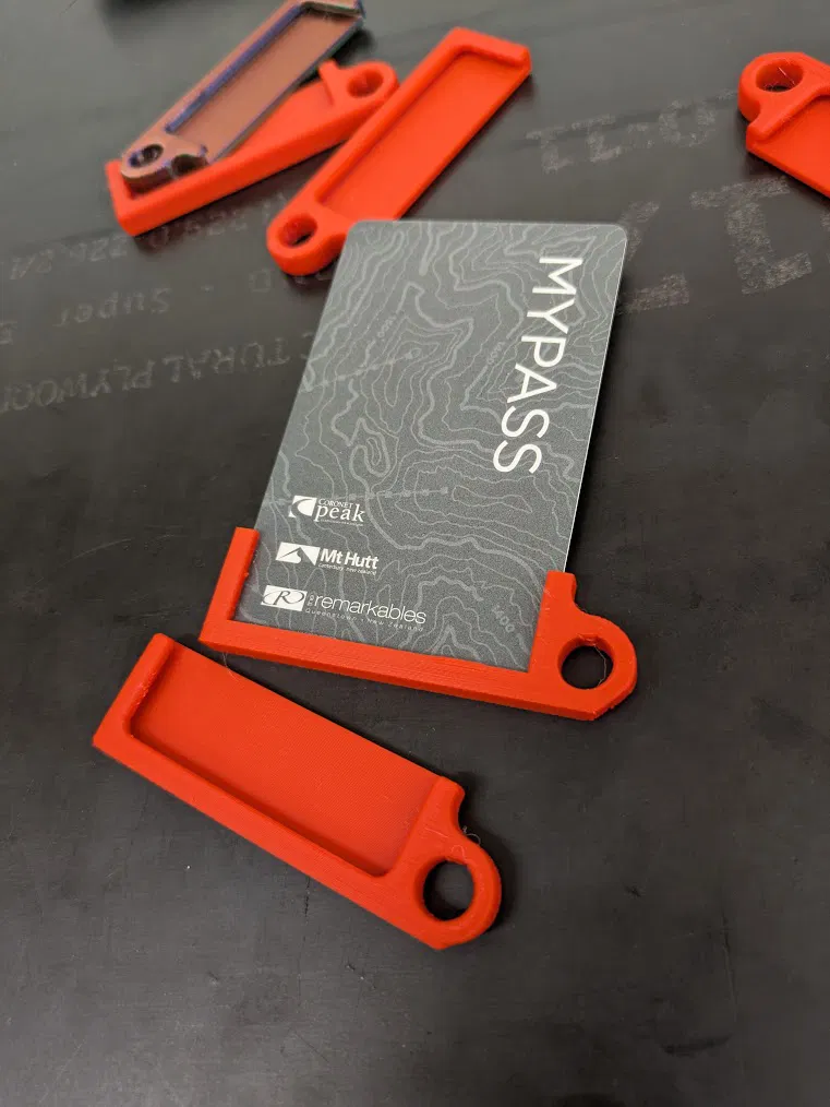 Kẹp gắn vào cạnh ngắn thẻ chuẩn ISO/IEC 7810 ID-1 (thẻ credit), có lỗ để móc dây. Có thể chỉnh độ khít bằng cách scale trước khi in hoặc dán băng keo lên thẻ. In khe hướng lên, không cần support.