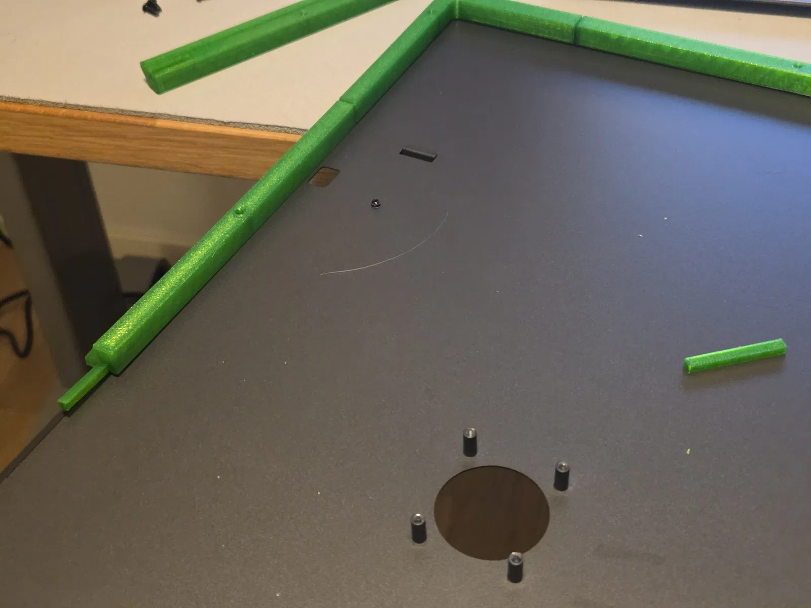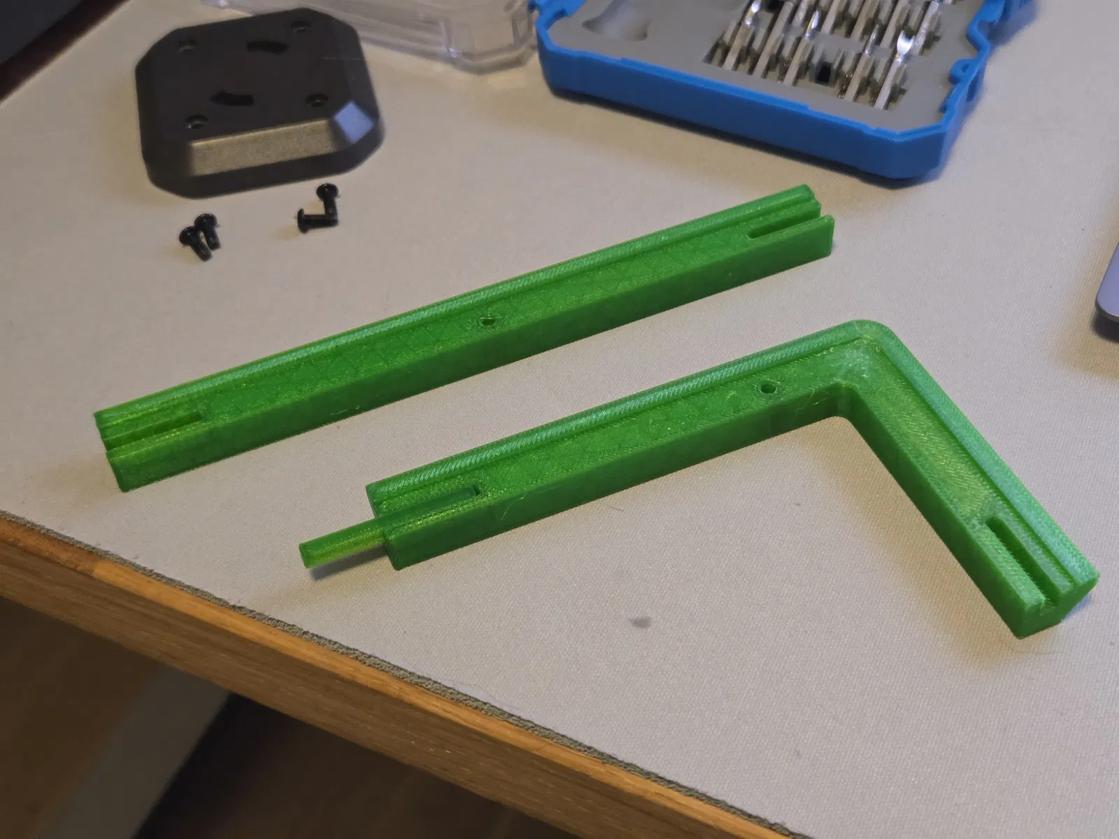 Mình muốn làm một bộ kê panel đơn giản, không cần dụng cụ đặc biệt như heat inserts. Ở các mối ghép có vài khe hở rất nhỏ. Bản in đầu tiên như trong hình bị bo tròn (roundings) ở phần inlay mép panel hơi lớn, mình đã sửa lại phần này rồi. Mình không dùng keo vì thấy khi lắp vào thì panel vẫn giữ chắc (tùy cái này còn phụ thuộc chốt/pin của bạn in ra có chặt hay không).