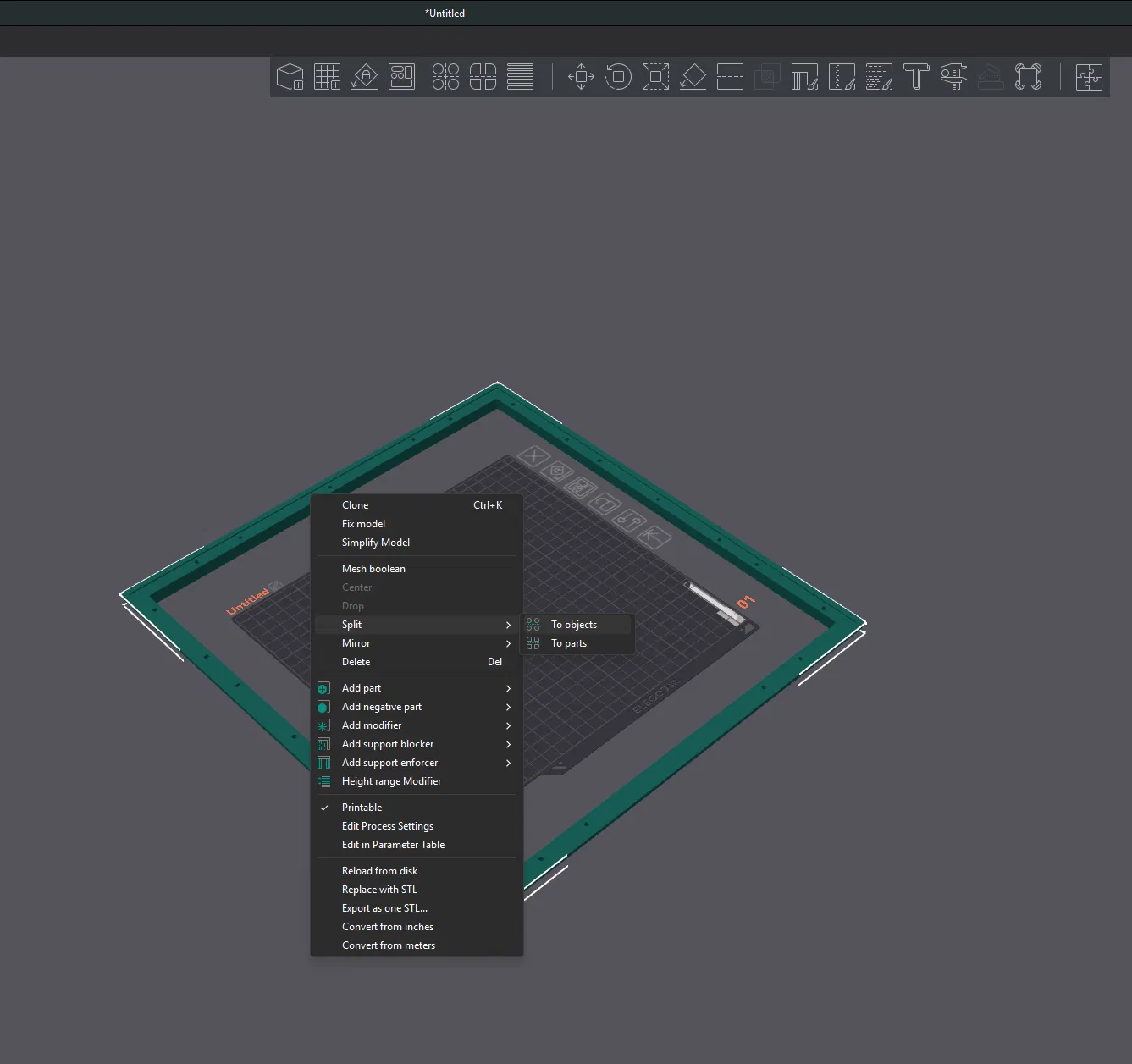In: Tách các mẫu trong slicer bằng cách nhấp chuột phải vào riser và chọn “Split” → “To objects”.