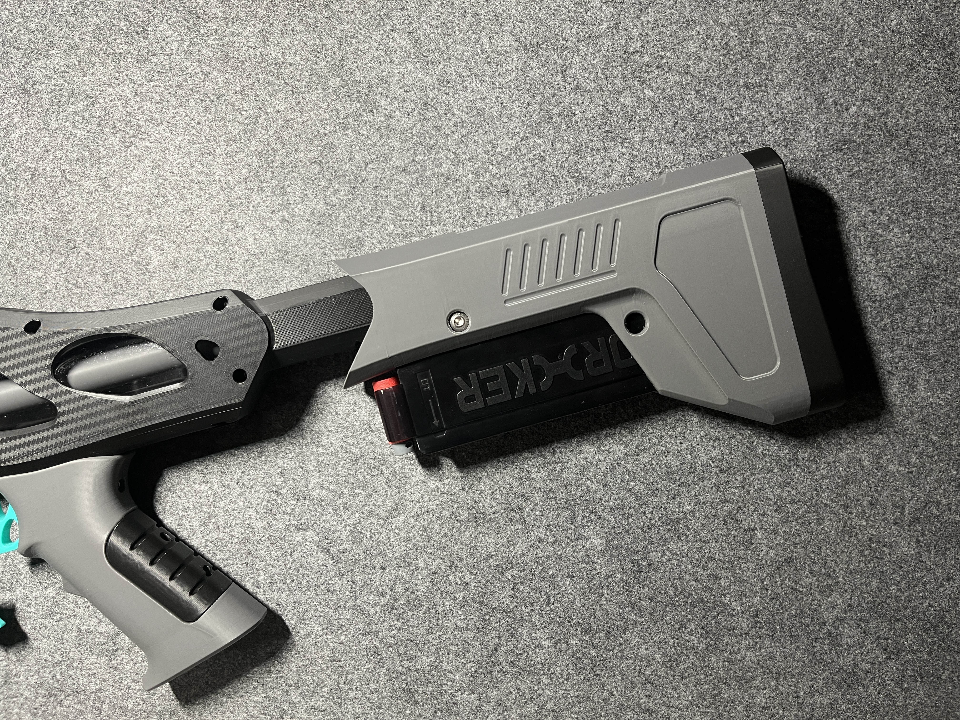 Ontos của Impulse Ungineering là một cây foam dart blaster rất xịn, nhưng cái stock zin dù kéo hết cỡ vẫn hơi ngắn so với ý mình. Mình xin giới thiệu Ducky Stock — dài hơn 65mm và đem lại một diện mạo mới cho blaster.