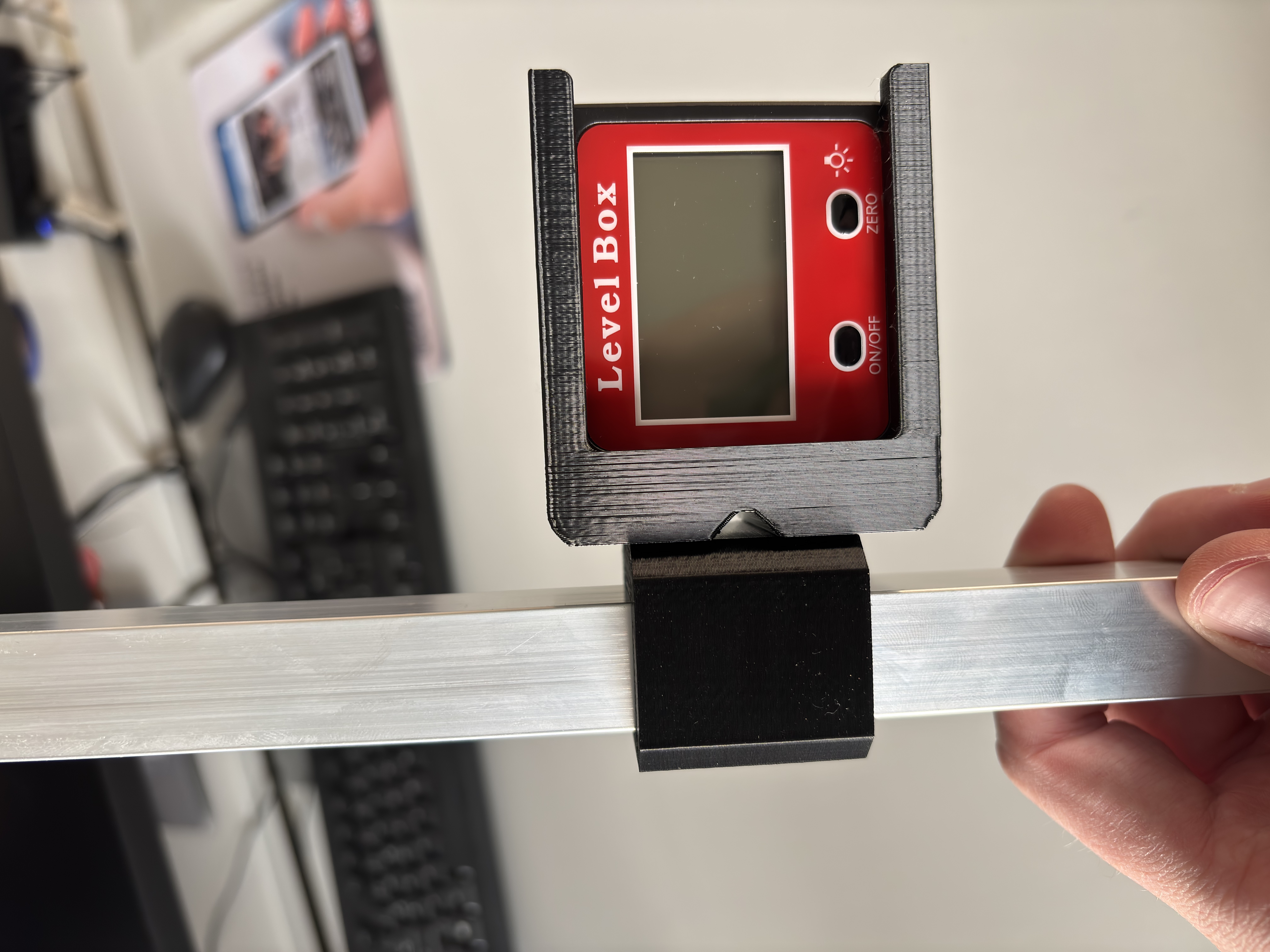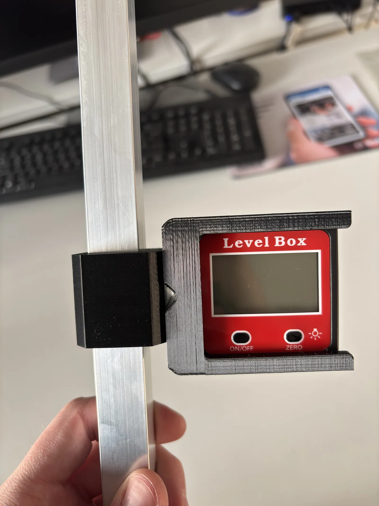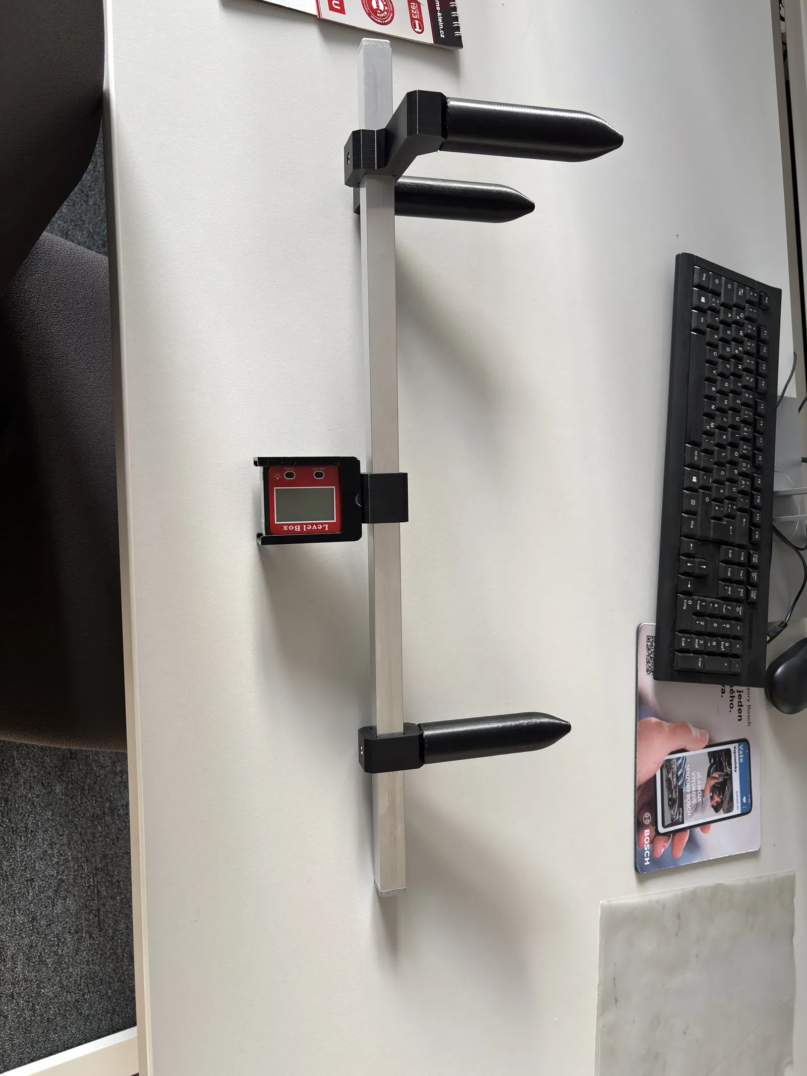 Một digital angle gauge từ AliExpress (mình dùng và thiết kế holder theo cái này: https://www.aliexpress.com/item/1005005866222018.html?spm=a2g0o.productlist.main.30.38173303rgz5Hw&aem_p4p_detail=2026010408585317840864289535540004295392&algo_pvid=582c0ceb-d0cb-49a0-8db1-4cb763ff5c22&algo_exp_id=582c0ceb-d0cb-49a0-8db1-4cb763ff5c22-29&pdp_ext_f=%7B%22order%22%3A%2221%22%2C%22eval%22%3A%221%22%2C%22fromPage%22%3A%22search%22%7D&pdp_npi=6%40dis%21CZK%21309.92%21309.92%21%21%2114.74%2114.74%21%40211b441e17675459337653426e01b8%2112000034628117713%21sea%21CZ%210%21ABX%211%210%21n_tag%3A-29910%3Bd%3Aae47bd50%3Bm03_new_user%3A-29895&curPageLogUid=SkKMZY95f2gy&utparam-url=scene%3Asearch%7Cquery_from%3A%7Cx_object_id%3A1005005866222018%7C_p_origin_prod%3A&search_p4p_id=2026010408585317840864289535540004295392_8)