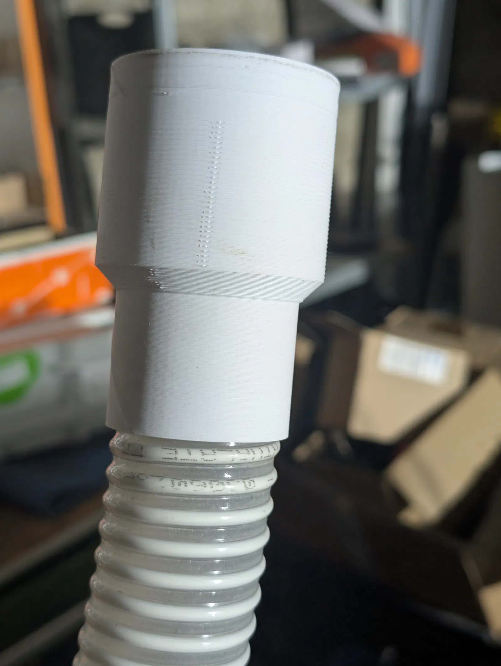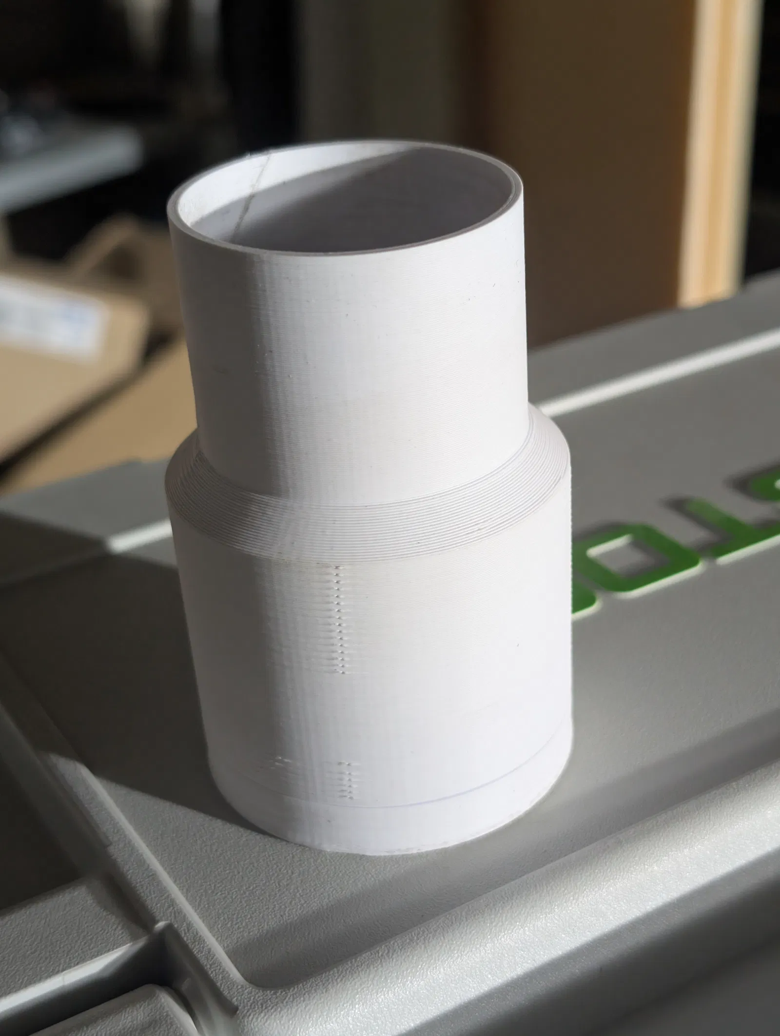 Nếu làm thêm một cái ngàm (notch) hoặc ren (threads) thì sẽ kín hơn giữa ống và adapter... nhưng băng keo vải (duct tape) cũng kín y chang 😜. Nếu có ai cũng cần vụ này thì mình sẽ bổ sung ngàm/ren.