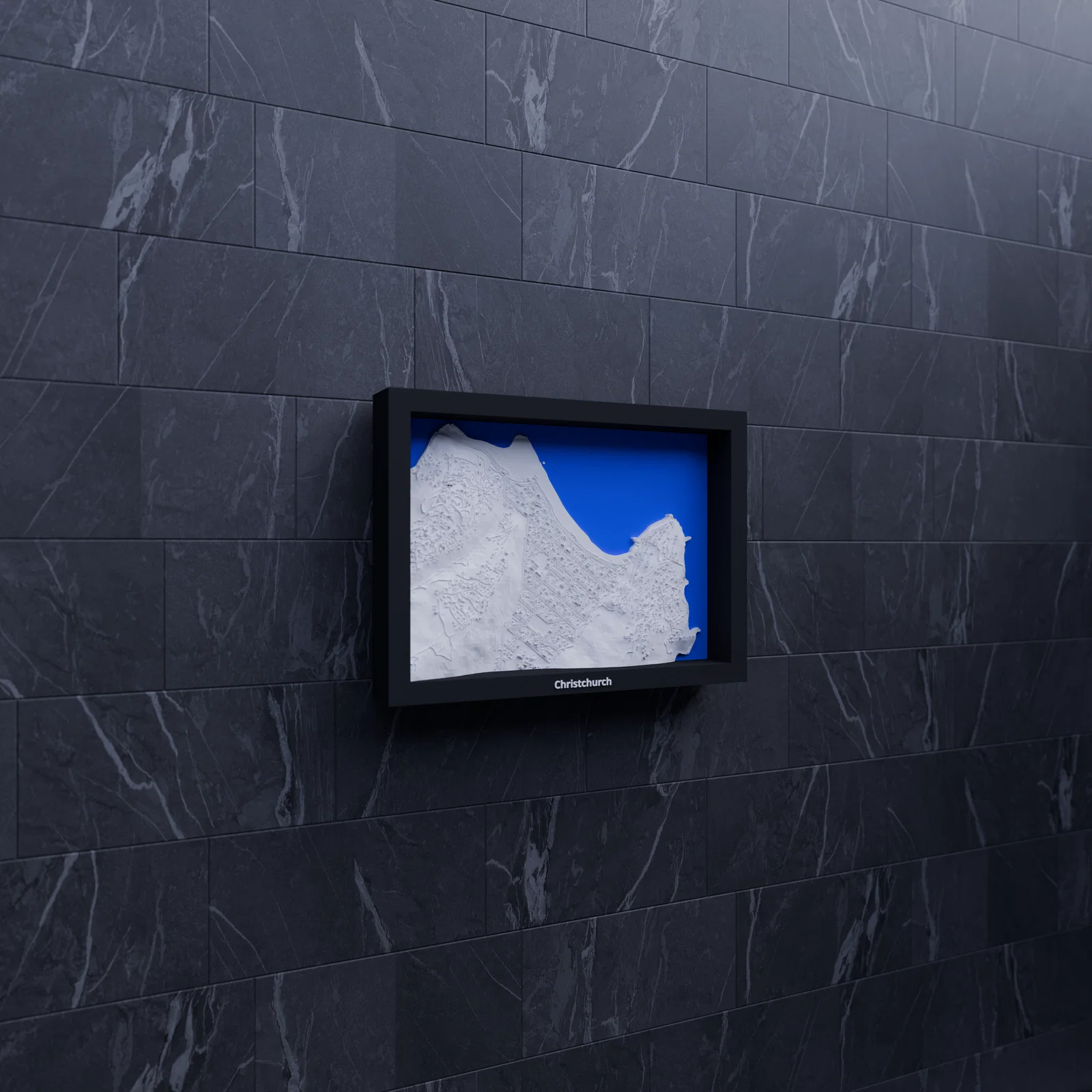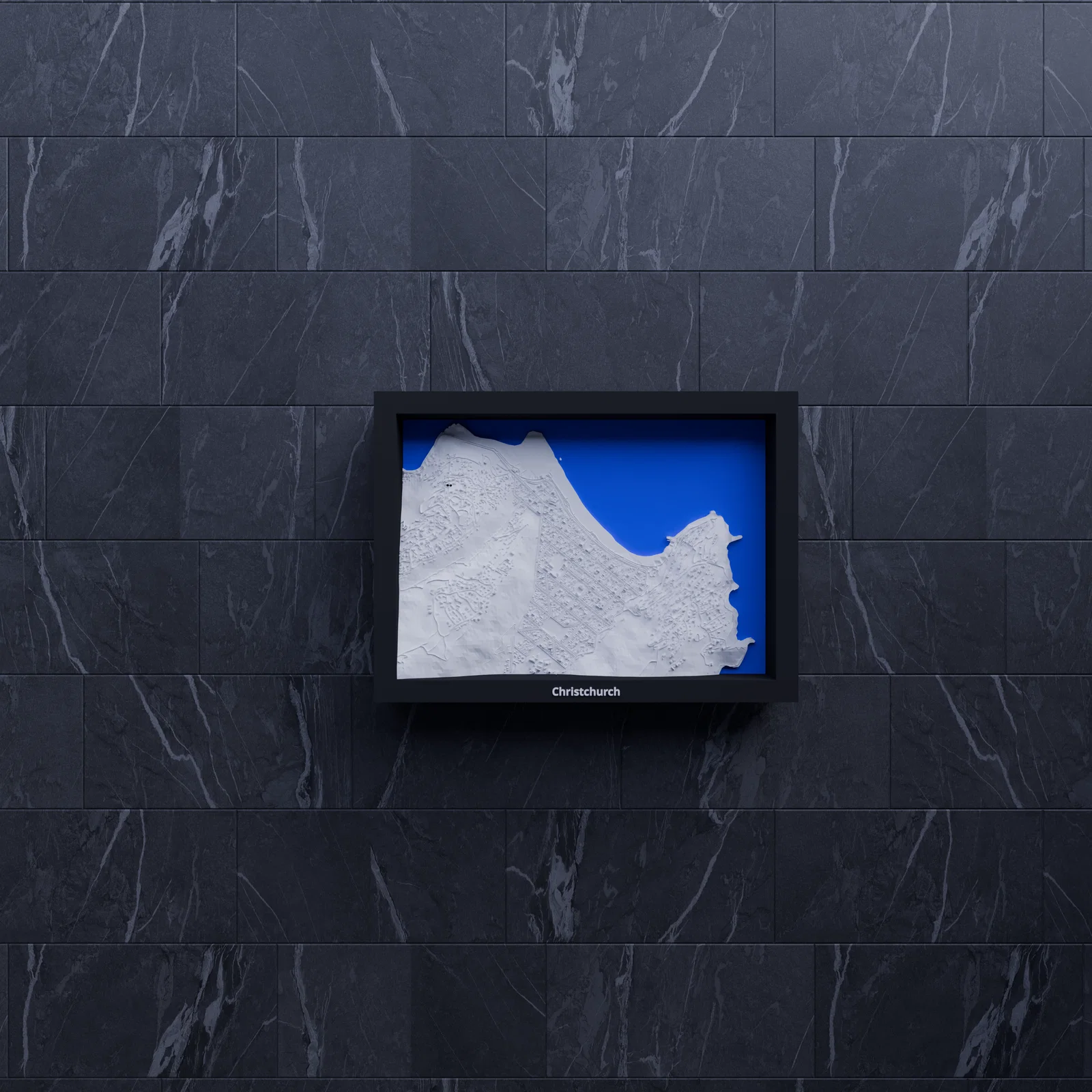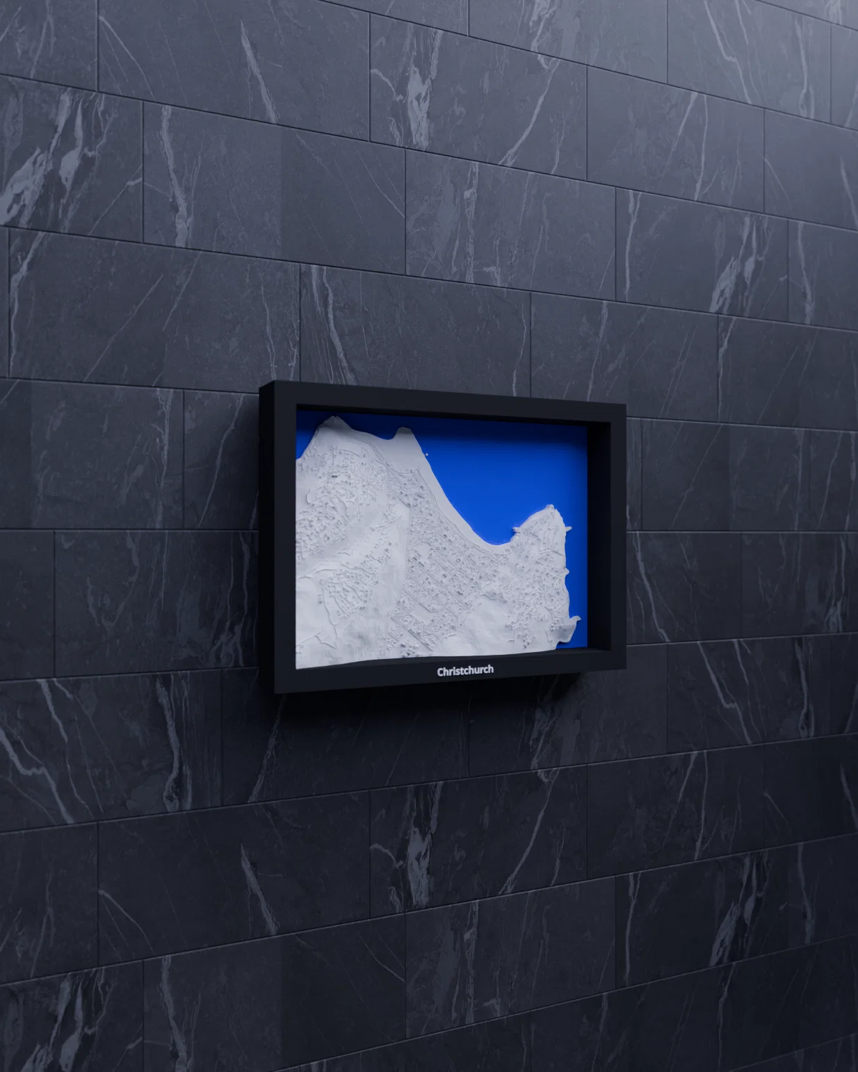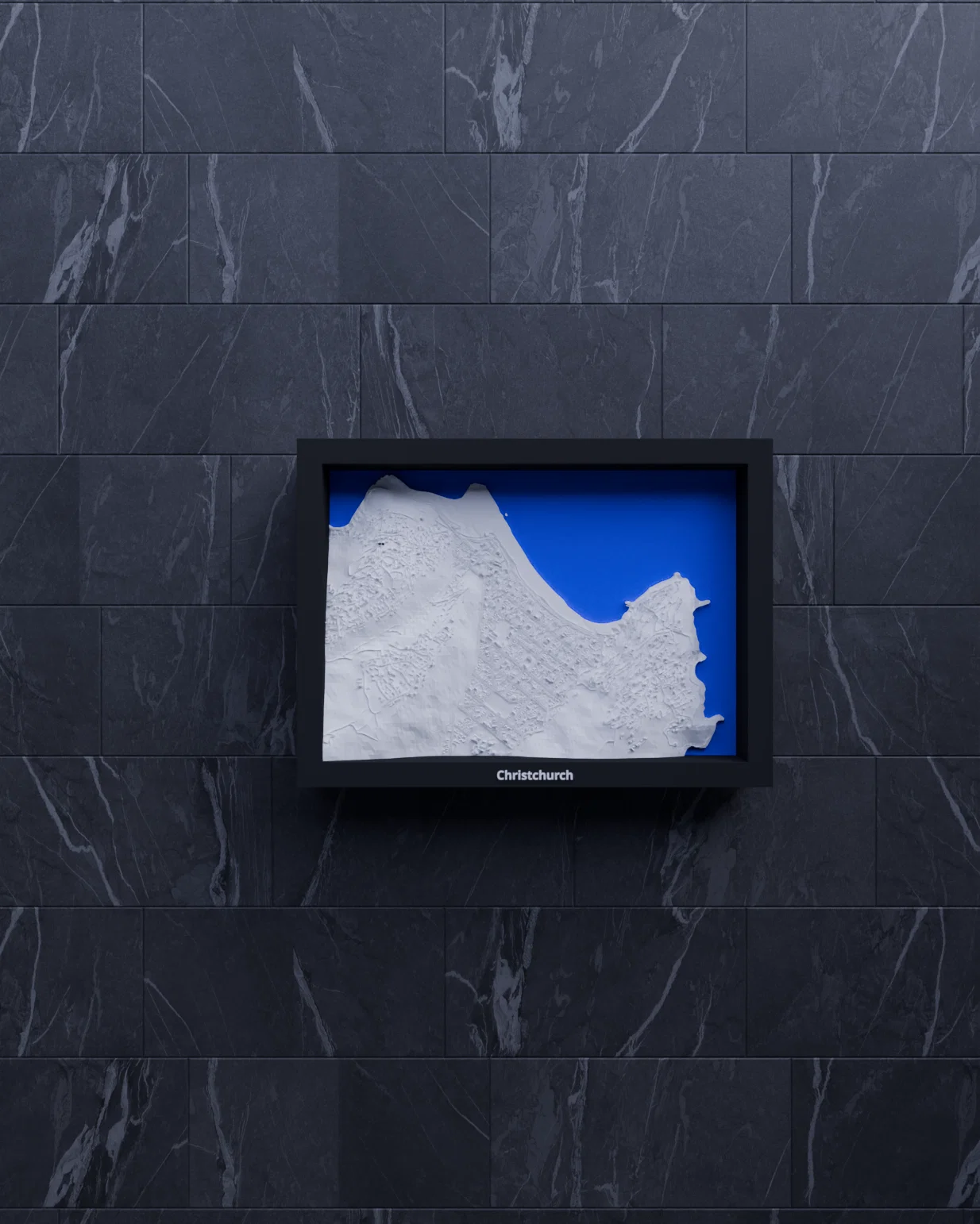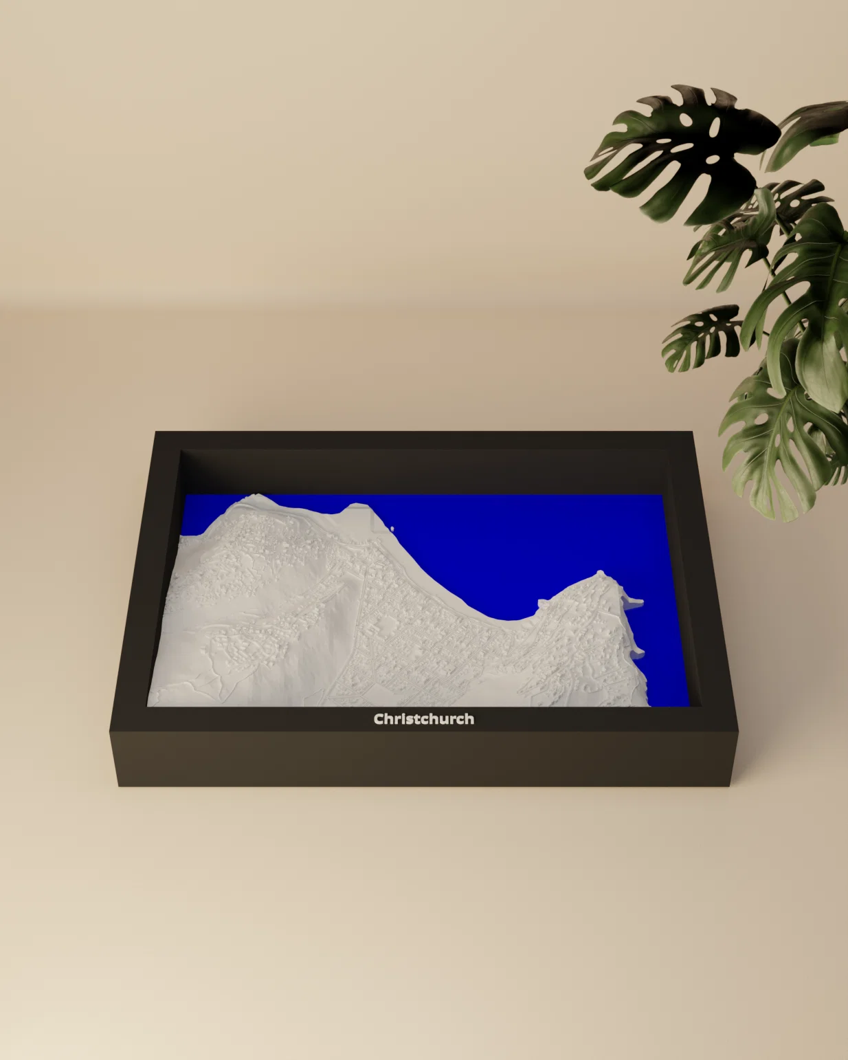 Mô hình thu nhỏ địa hình 3D tái hiện Christchurch, Sumner (New Zealand) từ dữ liệu địa lý, thu nhỏ từ 2.817×1.968 km xuống 170.5×119.5 mm (~16523:1). Có frame kèm lỗ treo, hỗ trợ in multicolor/single color.