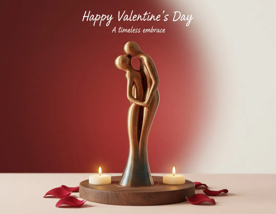 Tượng cặp đôi abstract tối giản “Timeless Embrace” với đường nét mềm mại, liền khối tượng trưng cho sự gắn kết. Rất hợp để 3D print làm quà Valentine, kỷ niệm, topper bánh cưới hoặc decor nhà sang.