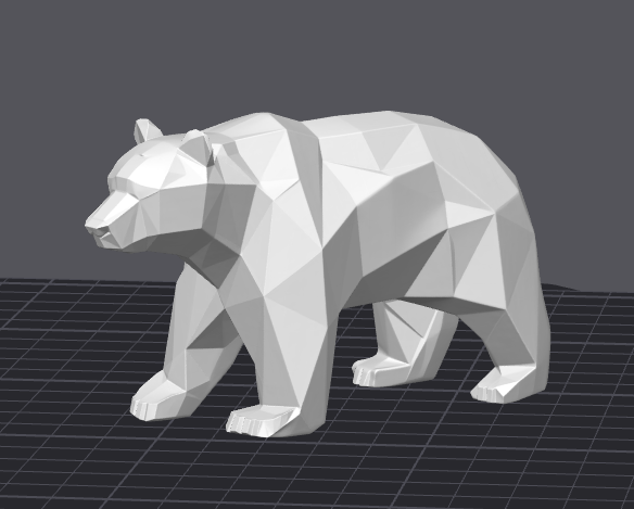 Tượng gấu với thiết kế Low Poly. Được tạo bằng công cụ Image-to-3D từ MakerWorld (https://makerworld.com/makerlab/imageTo3d)
