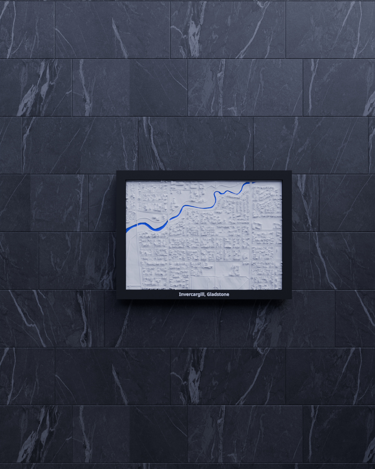 Bắt trọn vẻ đẹp cảnh quan thành phố của Invercargill, Gladstone với mô hình thu nhỏ địa hình này! Mẫu 3D này tái hiện khu vực địa lý quanh tọa độ -46.392, 168.353 (LatLng).