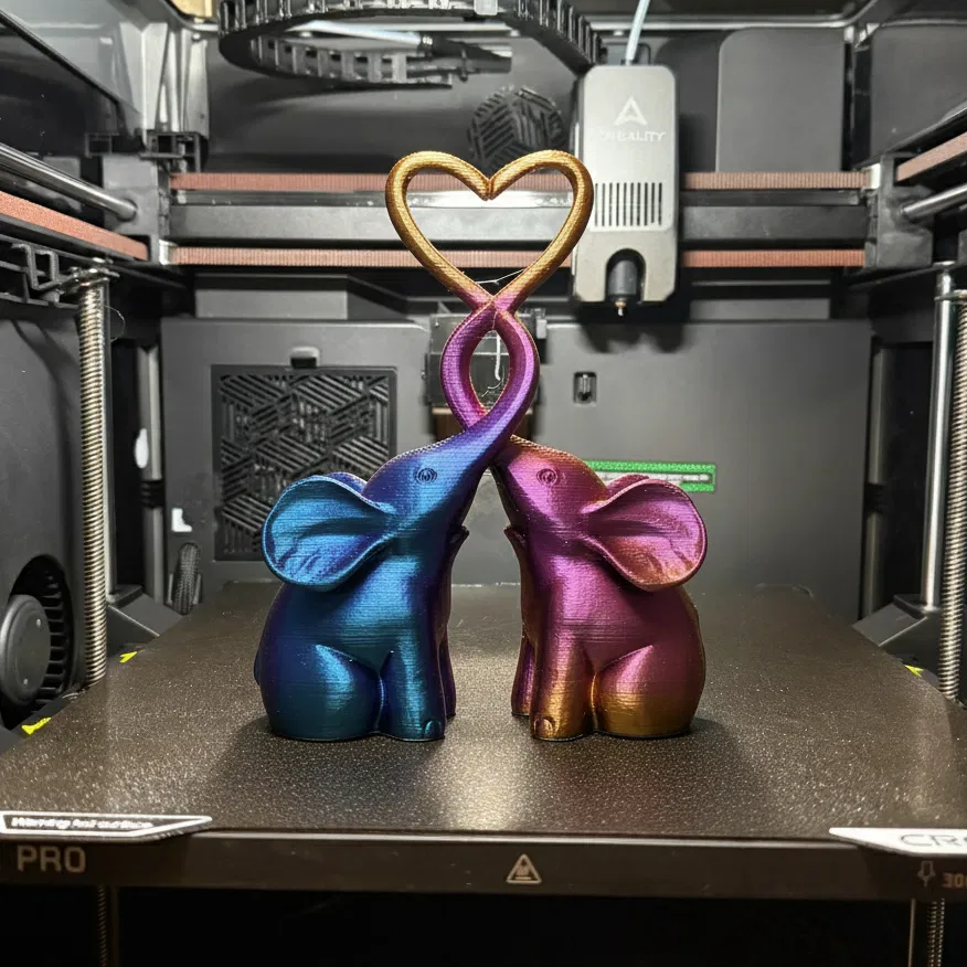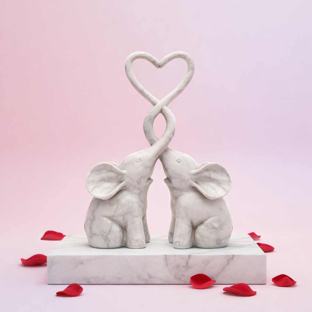 Tượng voi 3D printable “Infinite Bond” với hai chú voi ngồi đối diện, vòi xoắn đan vào nhau tạo thành hình trái tim. Biểu tượng “tying the knot” đầy lãng mạn, hợp làm quà cưới/đính hôn, decor Valentine hoặc tân gia.