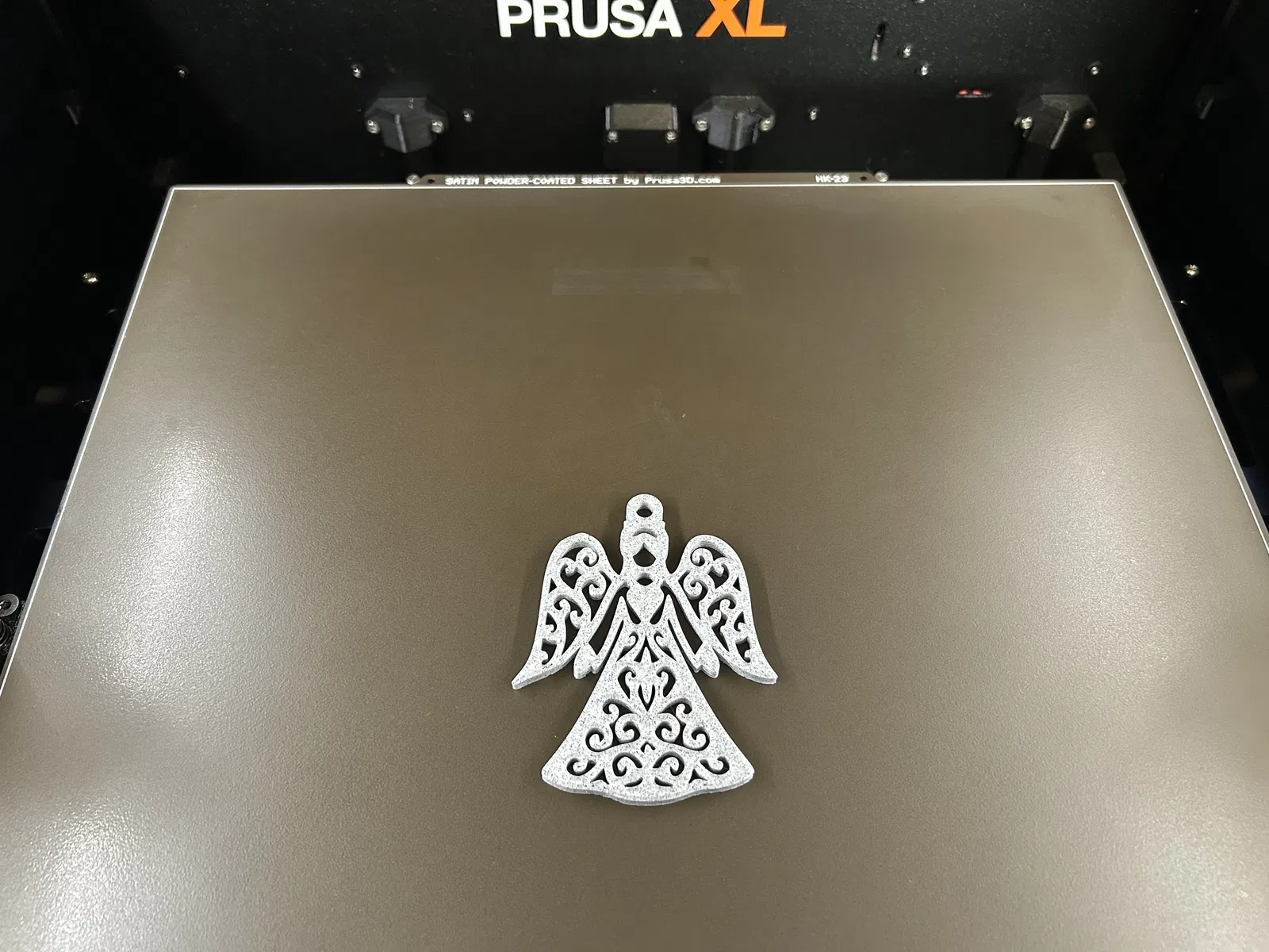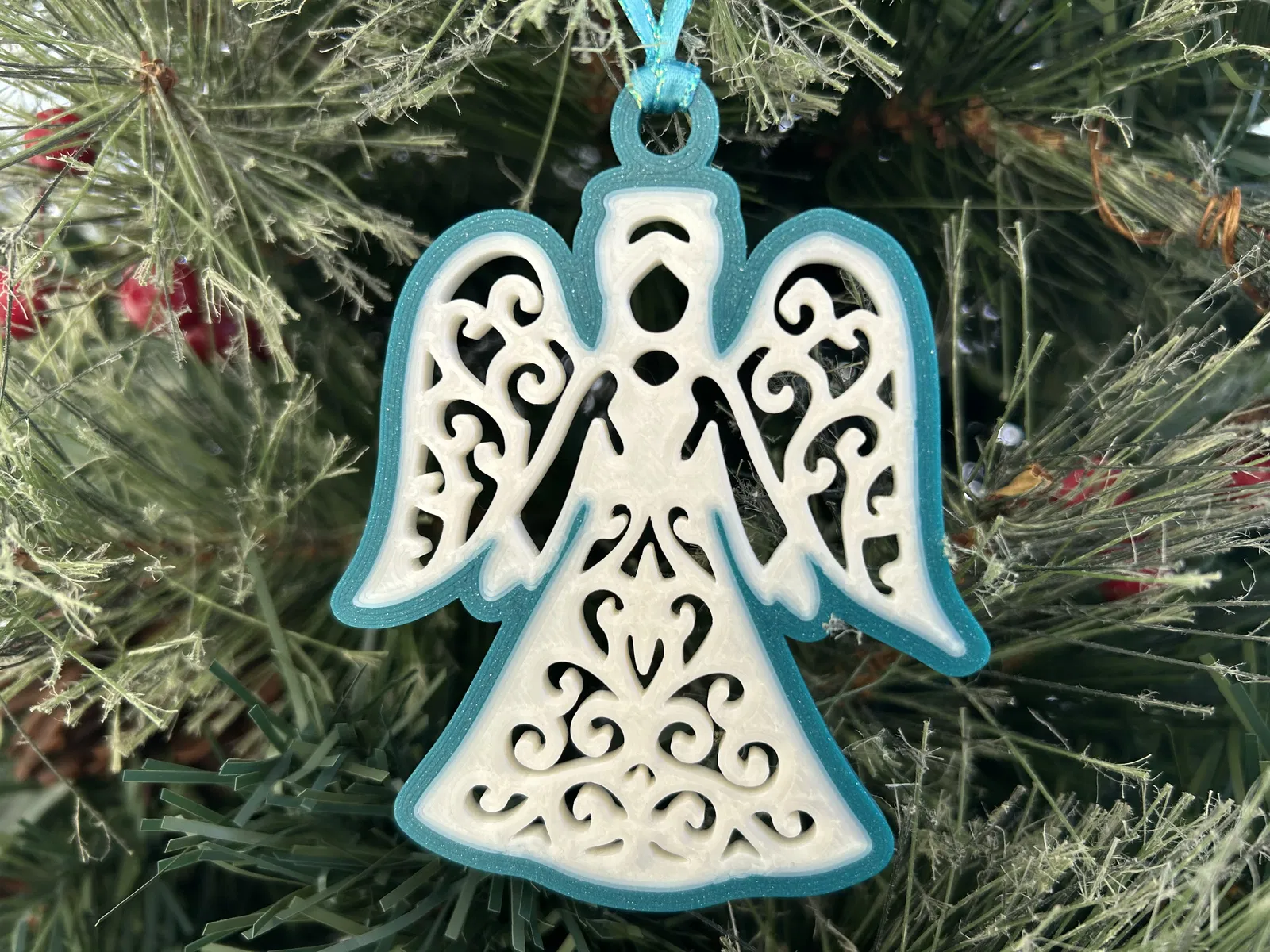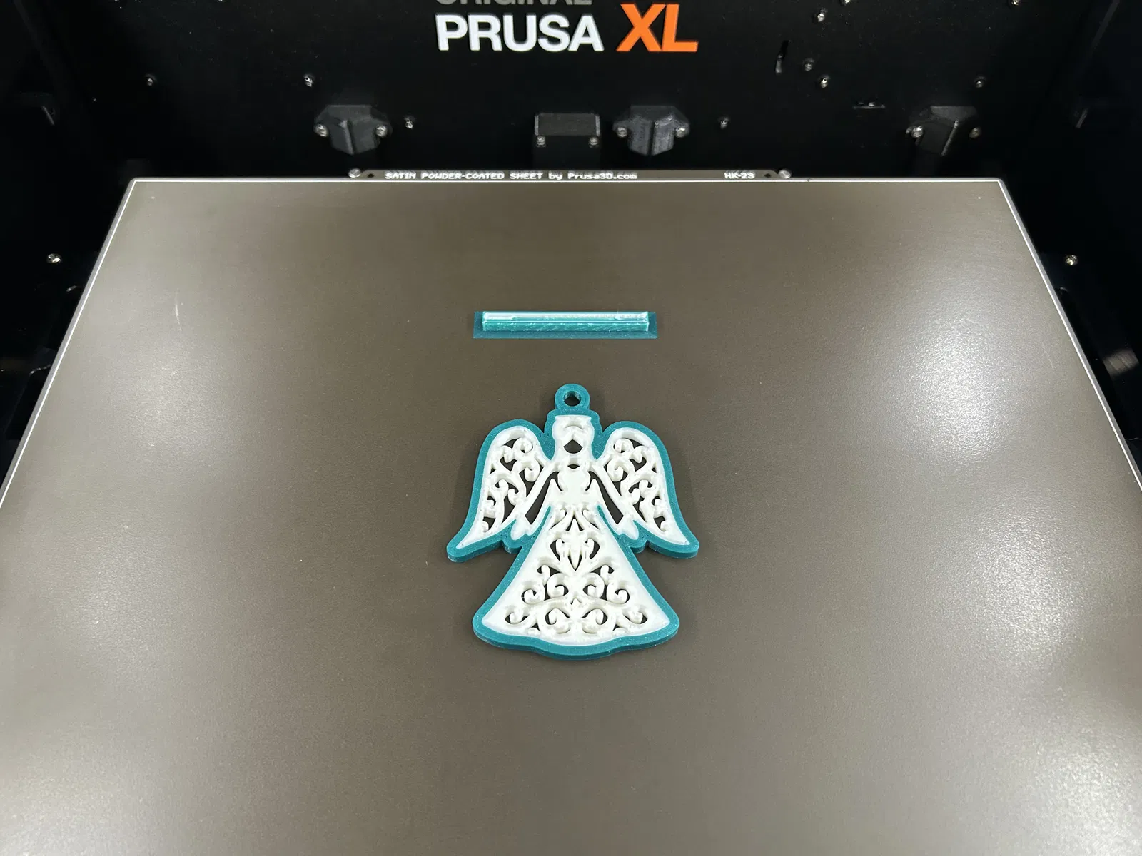 Filigree Angel Ornament có 2 phiên bản: bản 1 dành cho máy in 1 sợi filament, bản 2 (MMU) dành cho máy in multi material để in nhiều vật liệu/màu linh hoạt hơn.