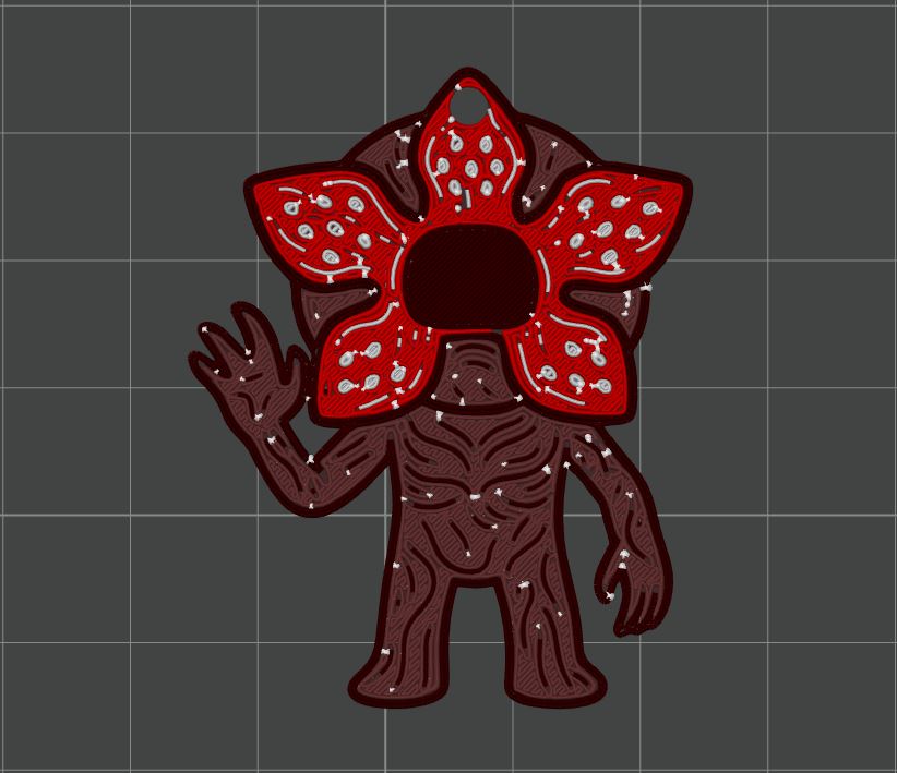 Mẫu móc khóa lấy cảm hứng từ Demogorgon trong series Stranger Things. Kích thước gọn: cao 5 cm, rộng 4 cm, hợp để in 3D làm quà tặng cho fan Netflix và phong cách retro thập niên 80.