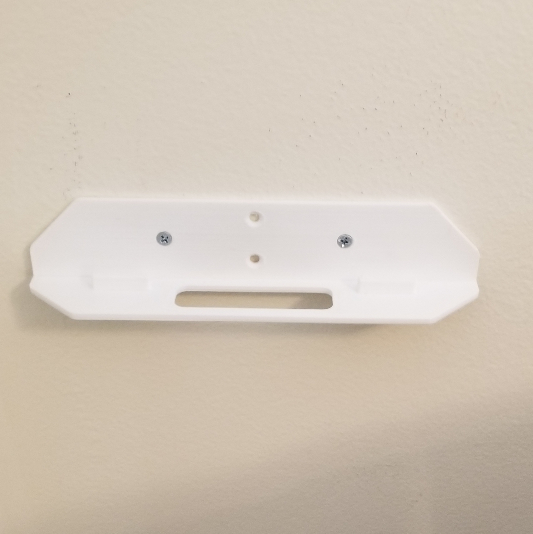 Kẹp bộ nguồn gài khít vào phần lỗ mở trên kệ, nhưng mình có dùng keo siêu dính (super glue) để cố định luôn. Phần giá treo và kẹp được bắt lên tường bằng vít đầu bằng (flat head screws) và tắc kê/anchor tùy bạn chọn. Dùng 3 con vít là cố định được.