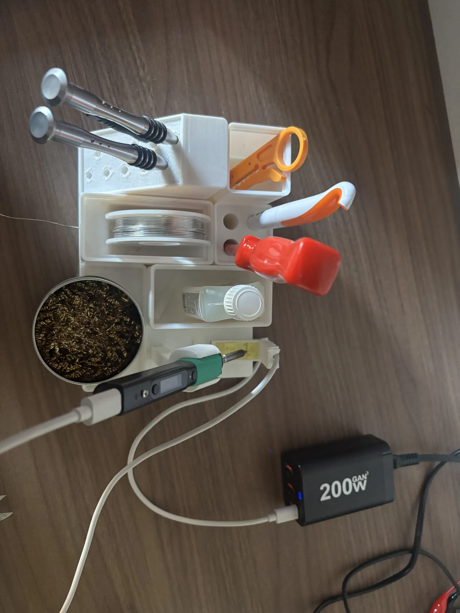 Trạm đặt mỏ hàn Pinecil nhỏ gọn, modular, thiết kế riêng cho Pinecil v1/v2. Giữ mỏ hàn chắc chắn, có chỗ đi dây nguồn, bảo vệ mũi hàn nóng khi không dùng. Bố cục gridfinity, dễ chỉnh sửa theo nhu cầu.