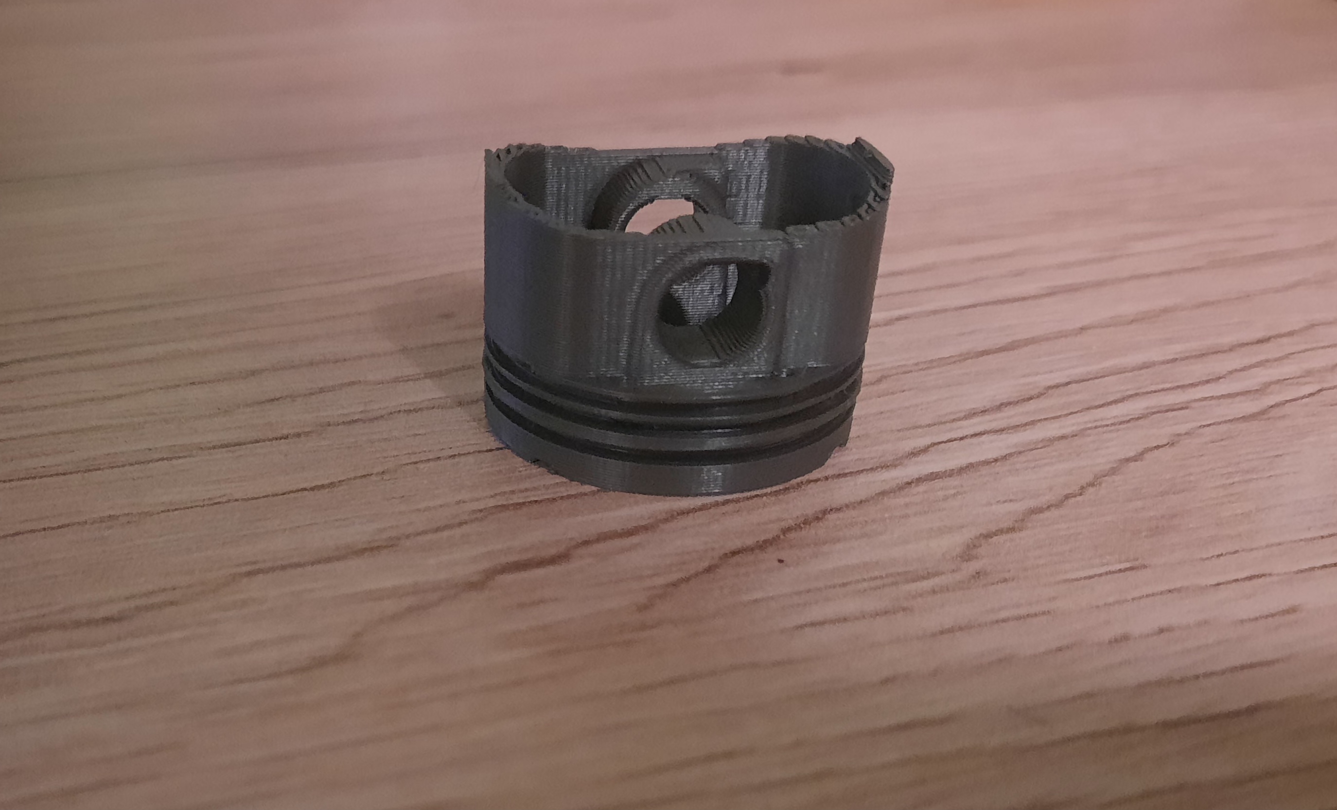 Mẫu móc khóa piston nhỏ mô phỏng piston thật của Volkswagen và Audi. In bằng PLA trên Prusa MK3S; khuyến nghị giảm scale còn 35% để đạt kích thước móc khóa gọn đẹp, dễ mang theo.