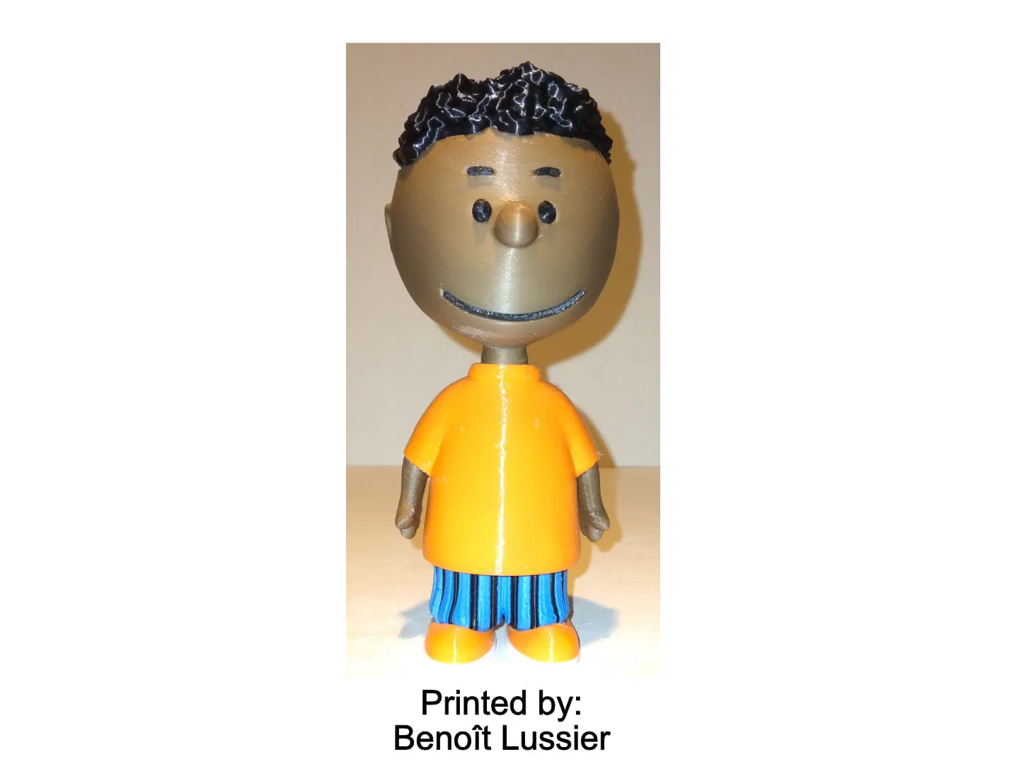 Franklin là nhân vật trong Peanuts của Charles Schulz. Model cao 150mm, tỉ lệ khớp với các nhân vật Peanuts khác. Cần supports cho phần head; có hướng dẫn in/ráp chi tiết. Có filament đúng màu thì không cần sơn.