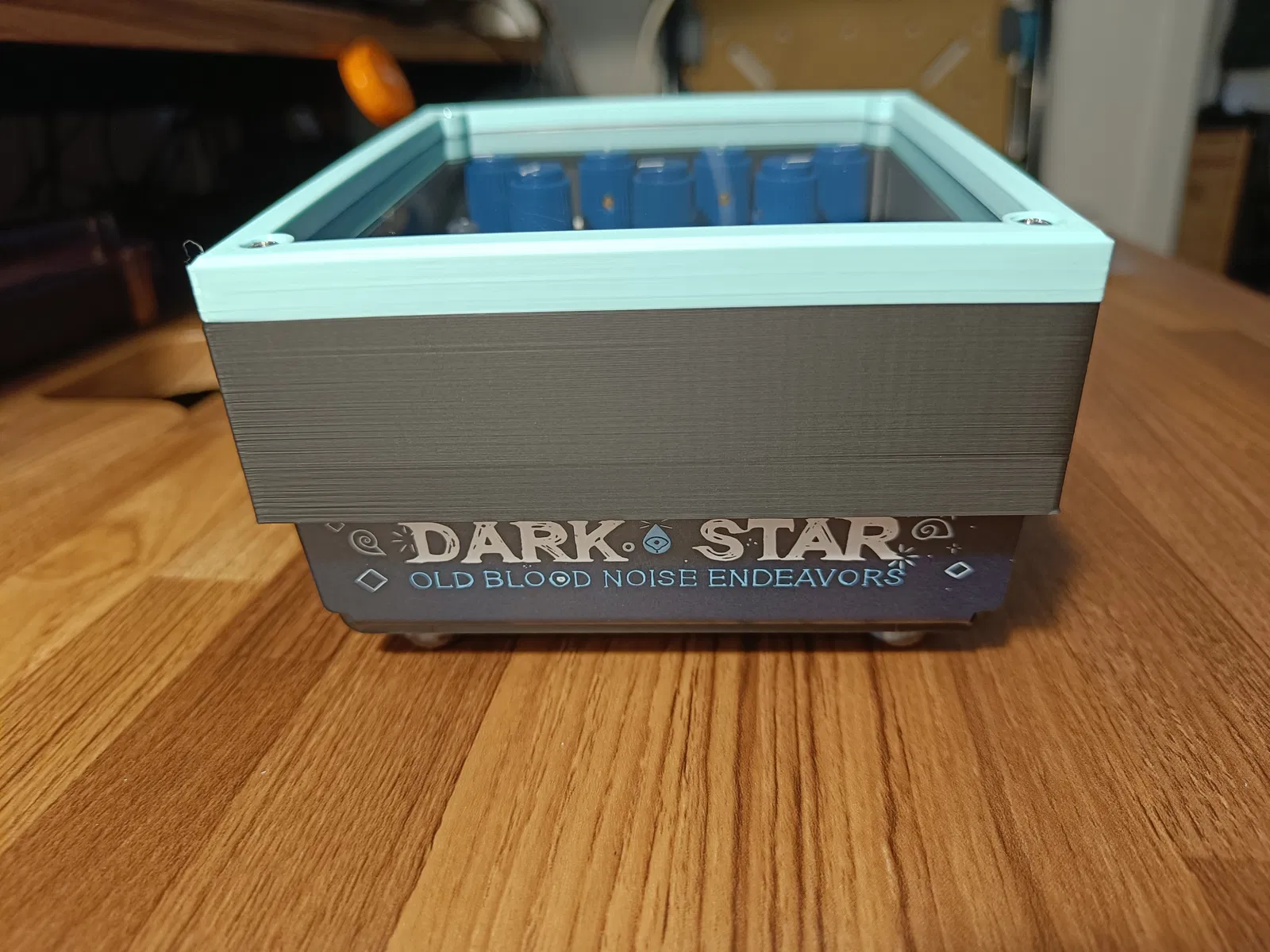 Nắp che 2 phần cho pedal Old Blood Noise Endeavors (OBNE) dạng stereo như Dark Star Stereo, có cửa sổ acrylic. Cần insert ren M3, ốc M3, tấm acrylic 4mm và băng keo xốp làm đệm.