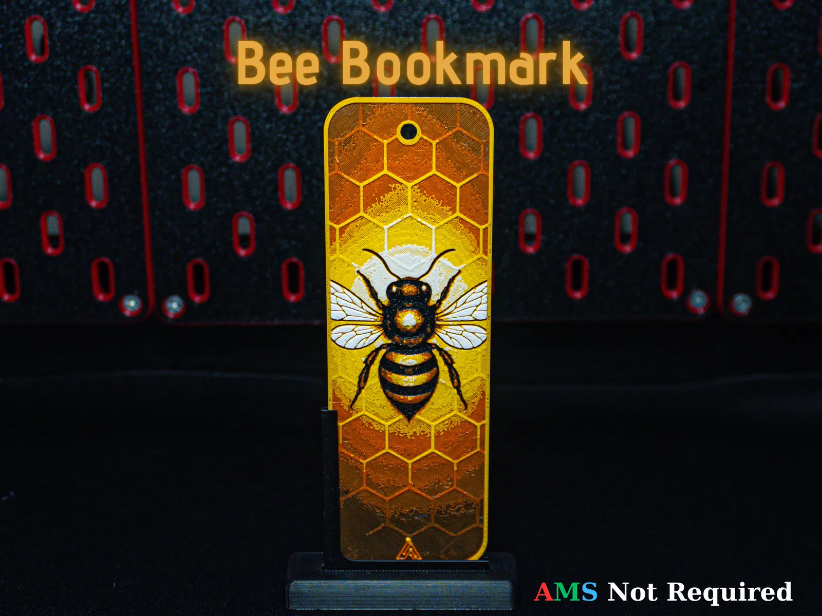 Bookmark Ong Hueforge với hình ong lồng họa tiết tổ ong, thiết kế nhiều lớp tạo chiều sâu rõ nét khi in. Dáng mỏng giúp kẹp trang gọn gàng, hợp dùng hằng ngày hoặc làm quà tặng nhỏ cho người yêu sách.