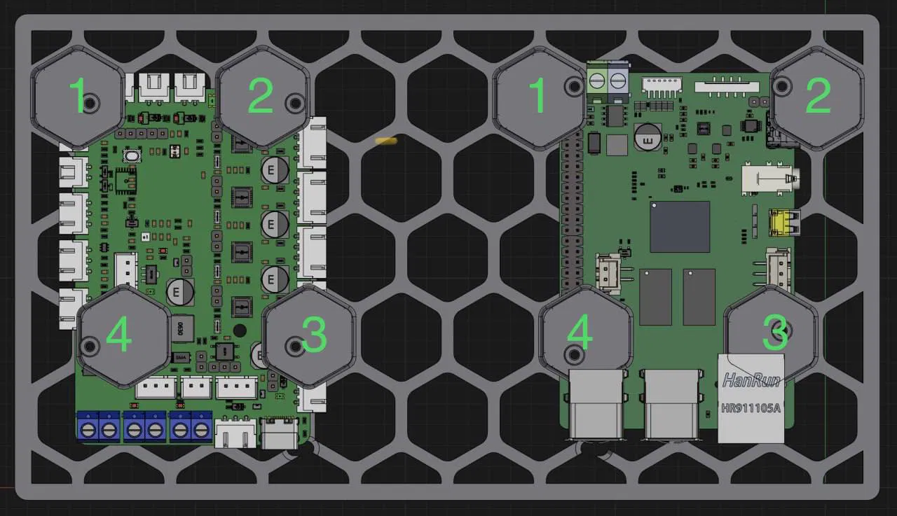 v2 (thiết kế cập nhật) có sẵn- Mỗi bảng điện tử sẽ được cài đặt trong Voron V0.2 khiến tôi nghĩ về một hệ thống Echo để giải quyết nhu cầu này. Các bu lông đi vào chơi sau khi bảng được cài đặt. Để làm điều này, bạn sẽ cần tải xuống và in các bu lông cho các bảng bạn dự định sử dụng. Ngoài ra còn có một mô -đun quản lý cáp được tạo để giúp quản lý hệ thống dây điện (đặc biệt là dây động cơ bước dài). Có 2 phiên bản của nắp quản lý cáp tùy thuộc vào việc bạn có định sử dụng bảng mở rộng hay không. Nếu bạn chọn sử dụng điều này thì không cần phải in giá treo quản lý cáp. Khung cơ bản vẫn có thể tải xuống cho những người muốn tùy chỉnh Futerer. Khi bạn bắt vít vào các ốc vít tự khai thác M2, các bảng sẽ được bảo đảm vào vị trí ***