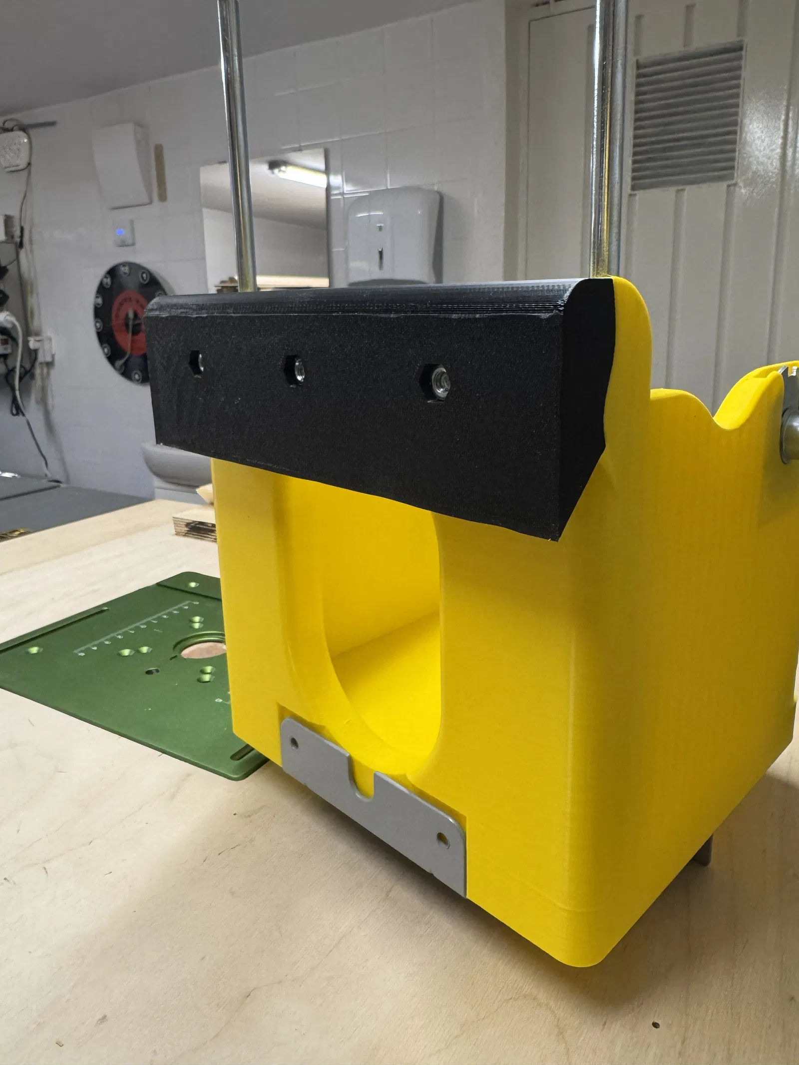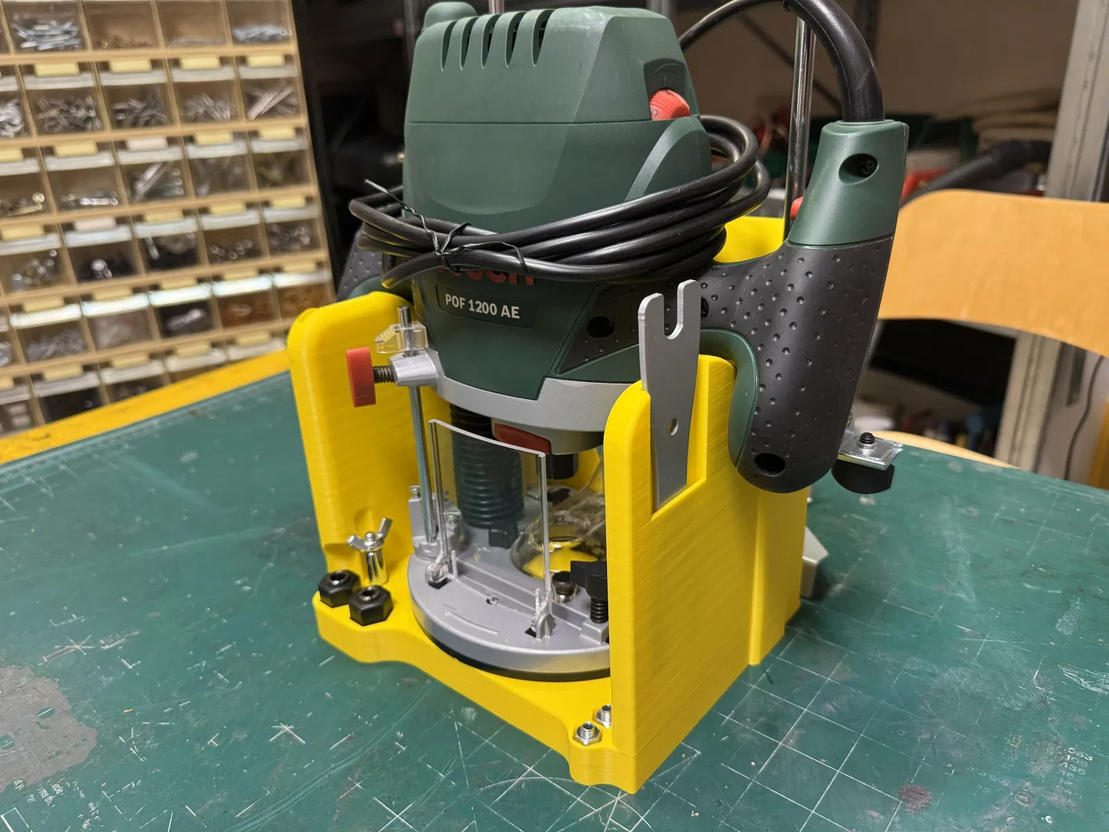Mẫu Router Bosch 1200 French Cleat được thiết kế trong Fusion 360 và in thử với Creality K1. Phù hợp làm ngàm treo theo hệ French cleat cho router Bosch POF 1200 trong xưởng gỗ.