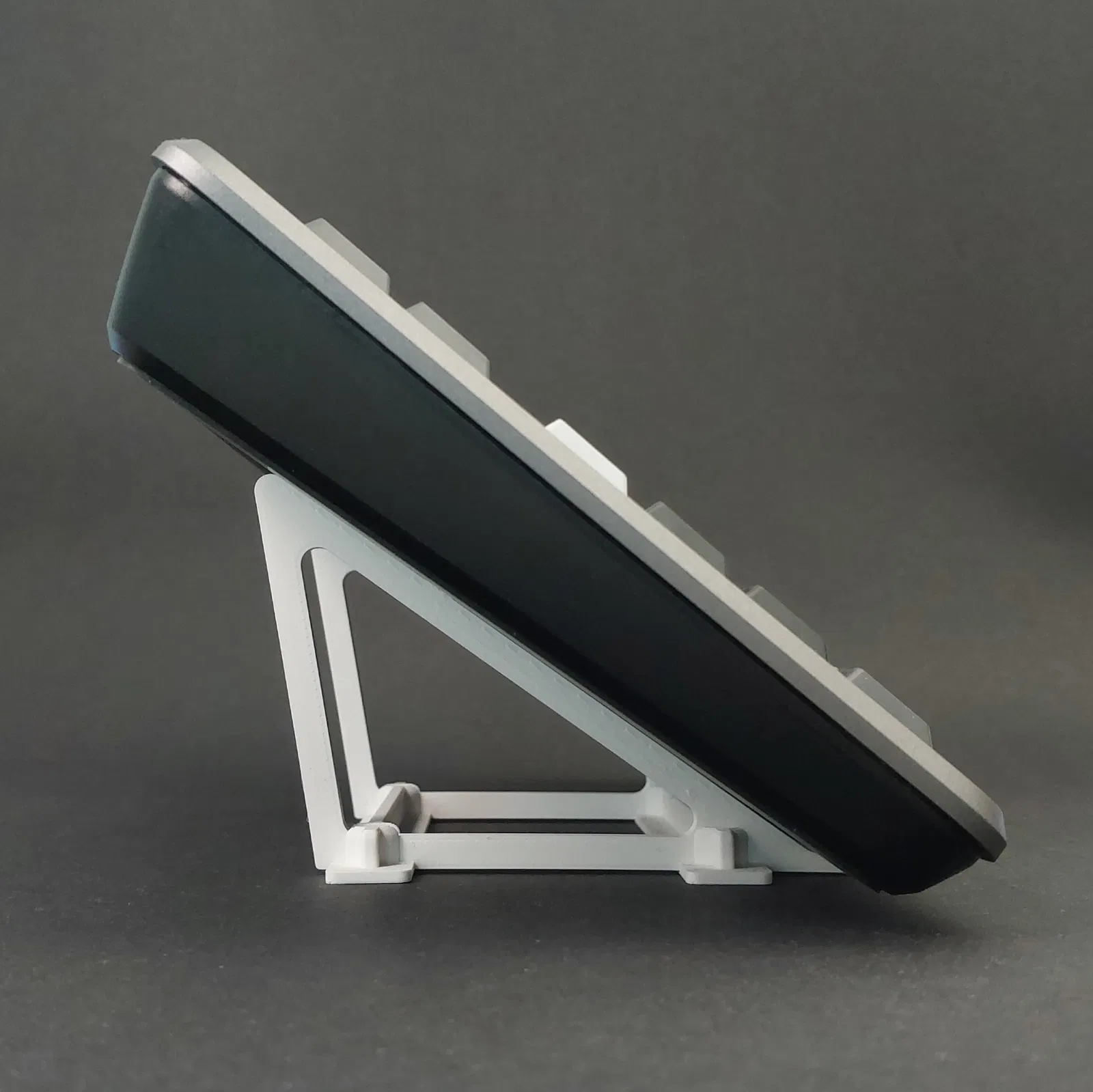 Chân đế cho DaVinci Resolve Speed Editor, hỗ trợ góc nghiêng bàn phím 20° hoặc 40°. Gợi ý dán thêm miếng cao su nhỏ dưới hai connector để tăng ma sát và giúp thiết bị bám chắc hơn khi sử dụng.