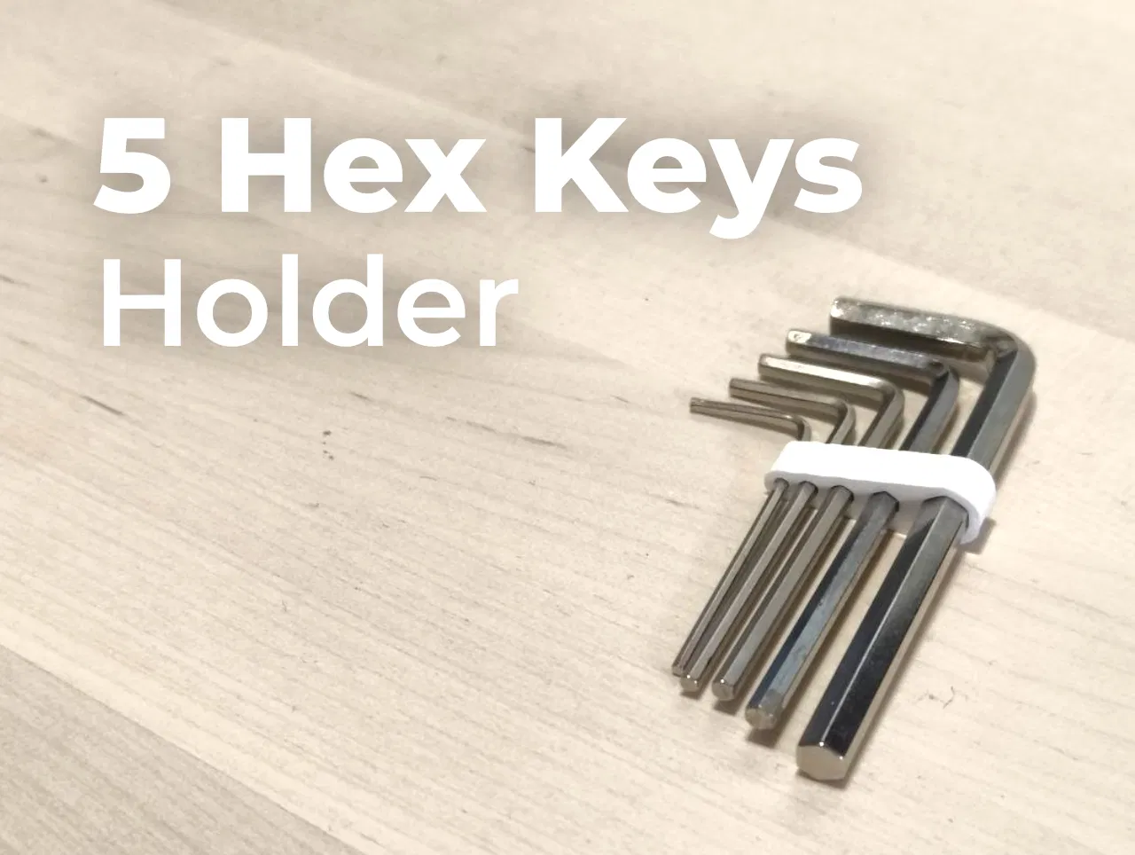 Holder in nhanh cho 5 cây lục giác (Allen keys) size 5, 3, 2.5, 2 và 1.5. Mẫu cao 6mm, có thể scale theo trục Z để tăng độ đỡ. Thời gian in khoảng 5 phút trên Prusa Core One.