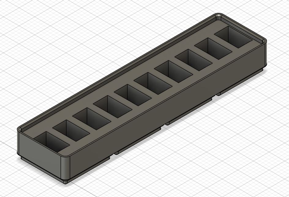 Remix từ thiết kế của jgremlin để vừa khít hơn với kích thước bộ cờ lê crowfoot của mình. Bản Gridfinity có icon, dùng hệ Metric, tiện sắp xếp và cất gọn trong xưởng.
