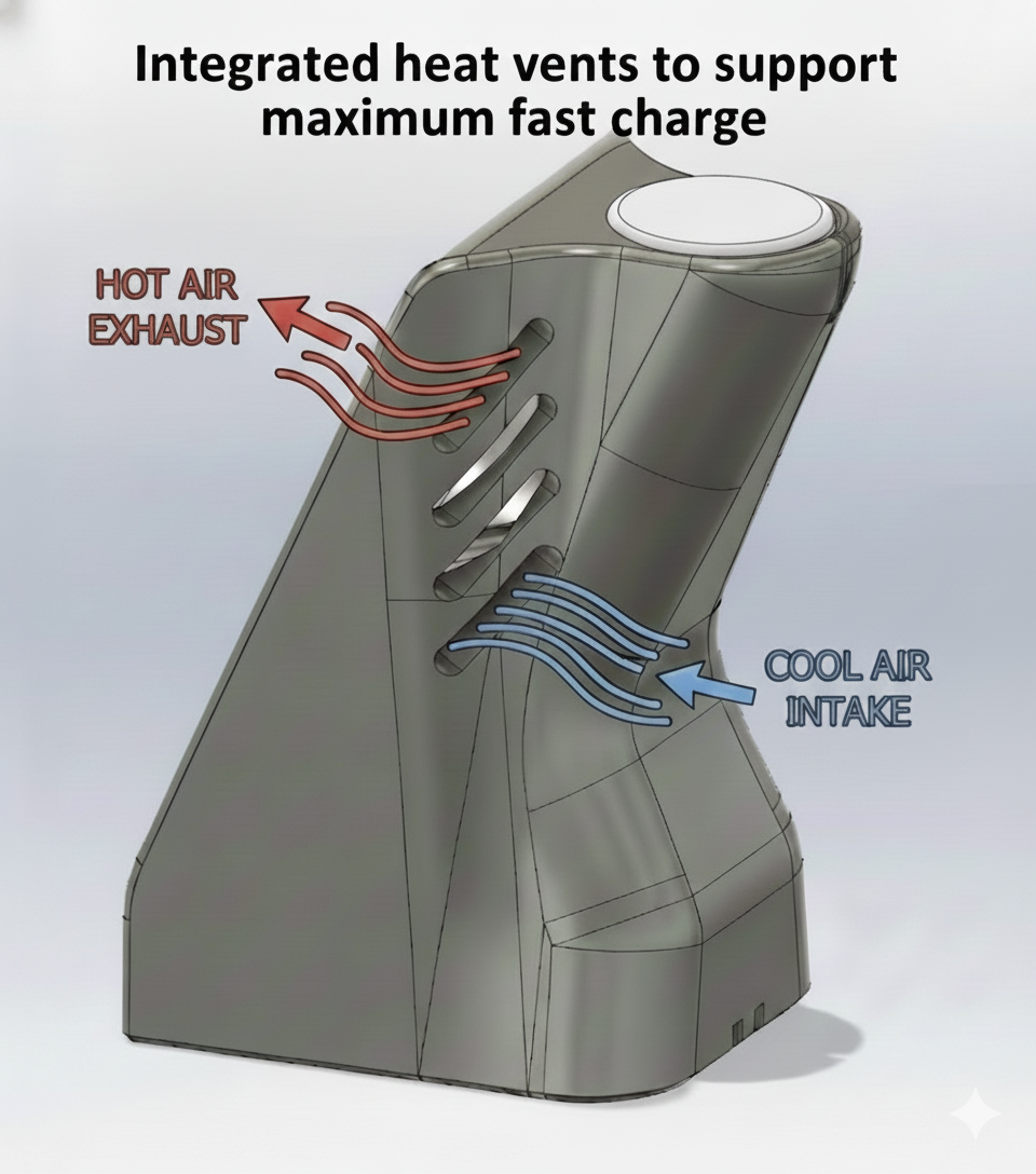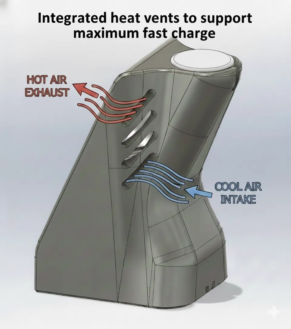 Có khe thoát nhiệt tích hợp để hỗ trợ mức sạc nhanh tối đa