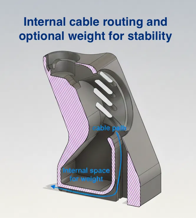 Có khoang bên trong để thêm tạ cho vững. Nhét gì nặng cũng được: sỏi, cát (trộn keo), ốc vít, chì câu, bê tông... v.v.