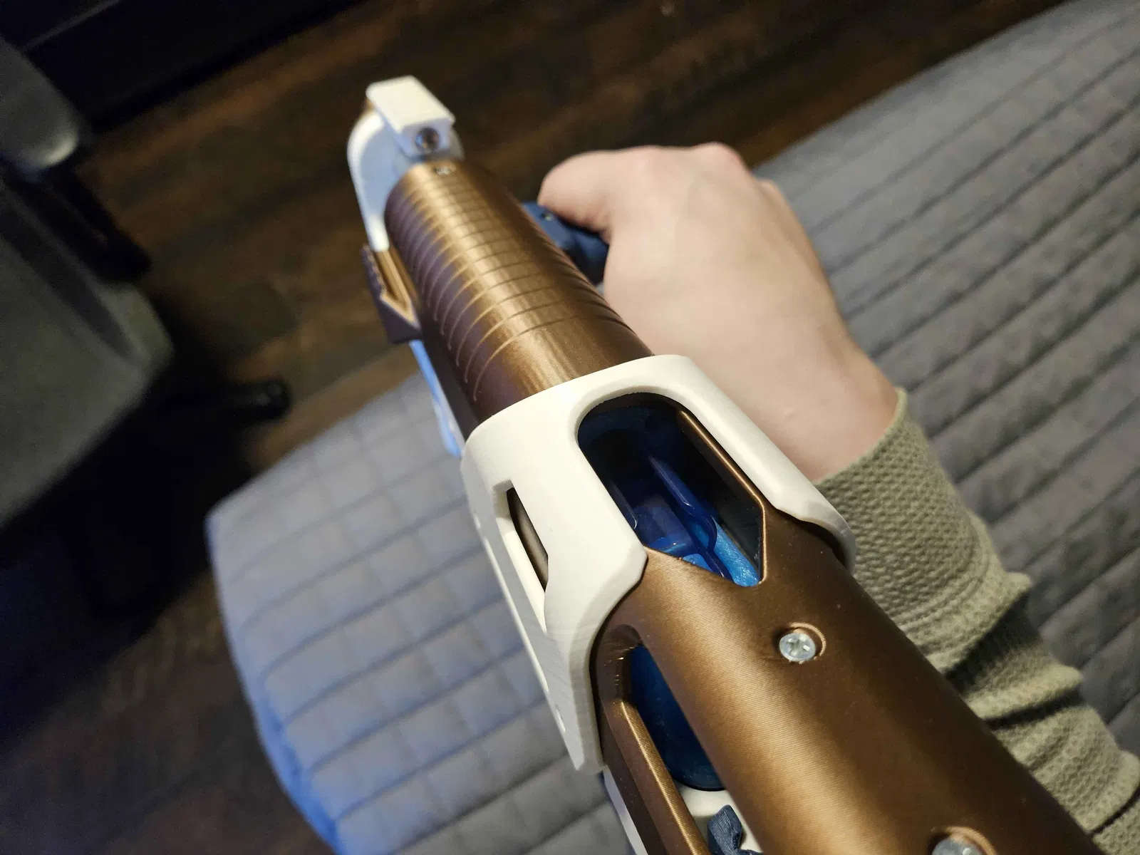Miếng slide cover cho súng Nerf Parallax, giúp có gối tì má khi ngắm xuống thước ngắm. Thiết kế dung sai hơi rộng nhưng vẫn có thể kẹt nhẹ do print-zip. Cần thêm 4 ốc 4-40 để lắp.