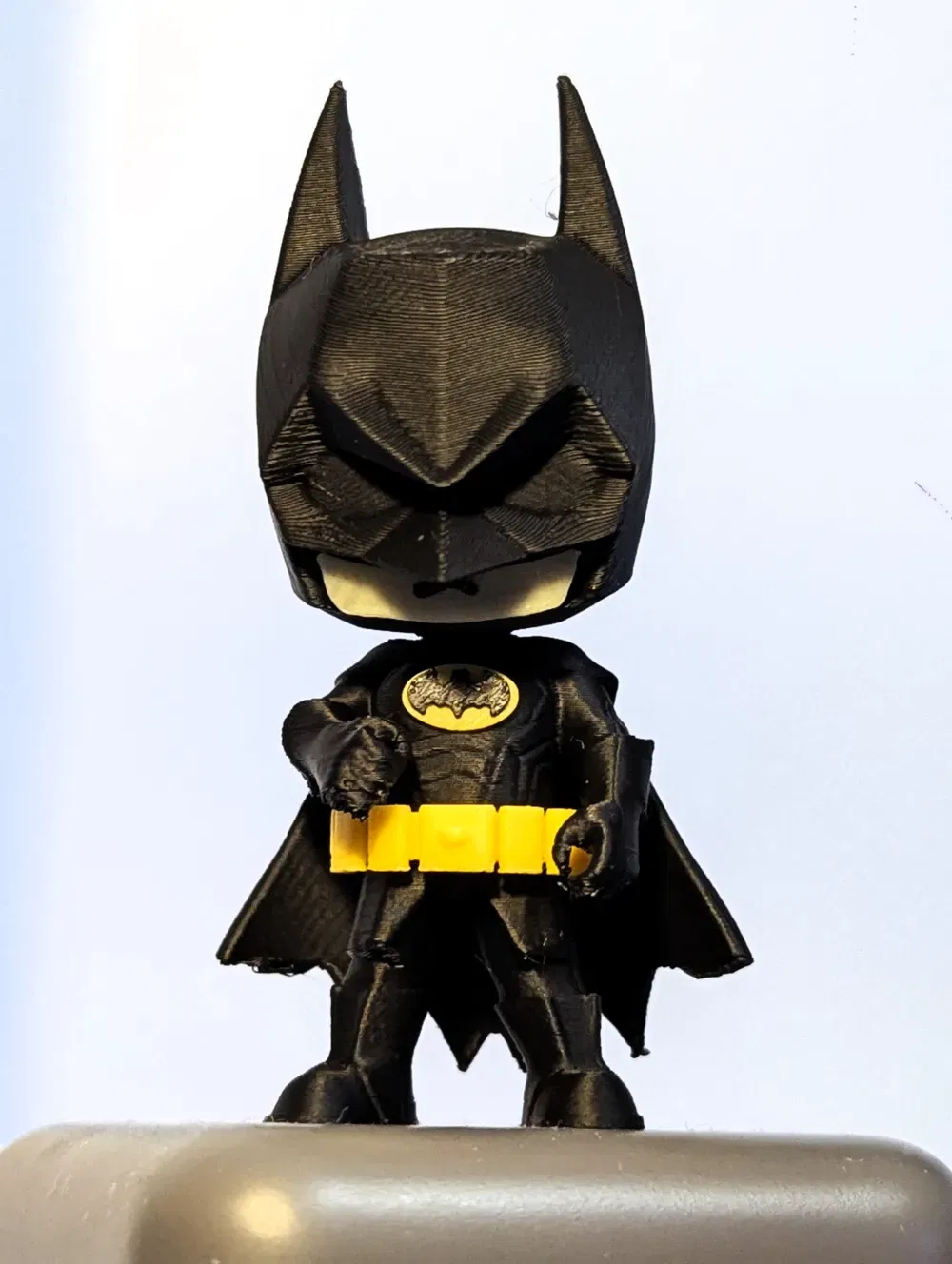 Vậy là xong! Mini Batman của riêng bạn! Mình không có filament màu da, nên phần mặt làm bằng vàng chanh, nhìn… hơi kỳ. Có vấn đề gì thì cứ để lại comment nha. Cảm ơn!