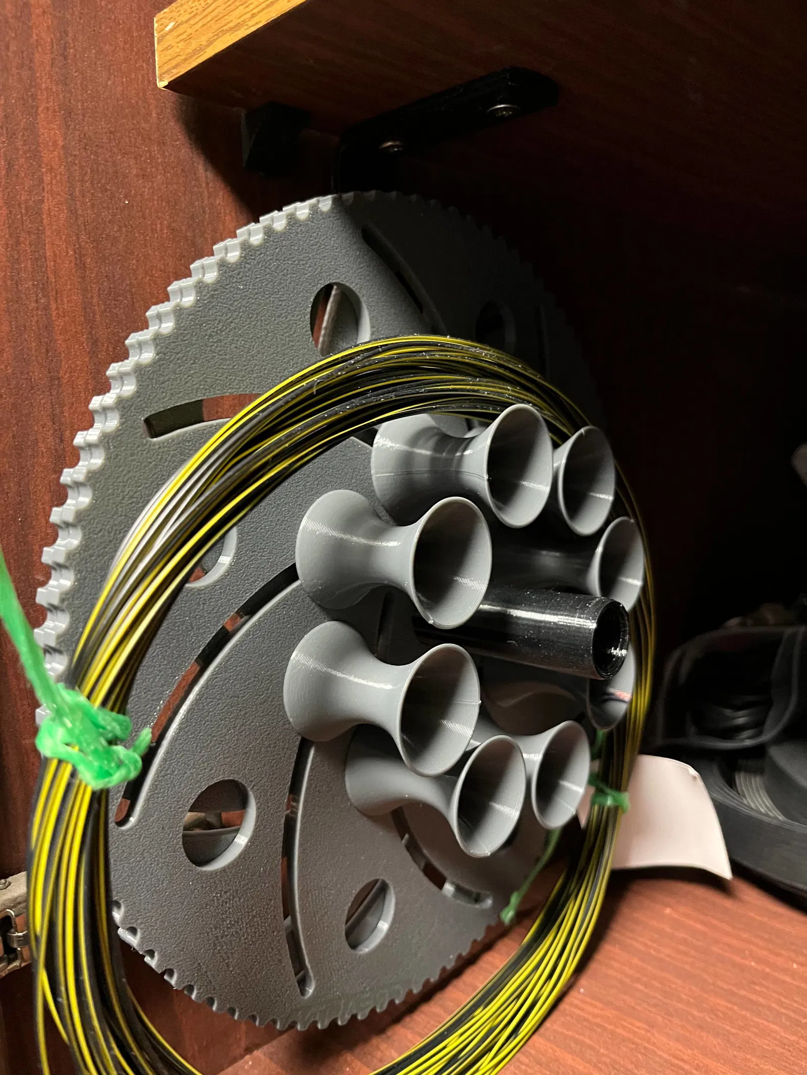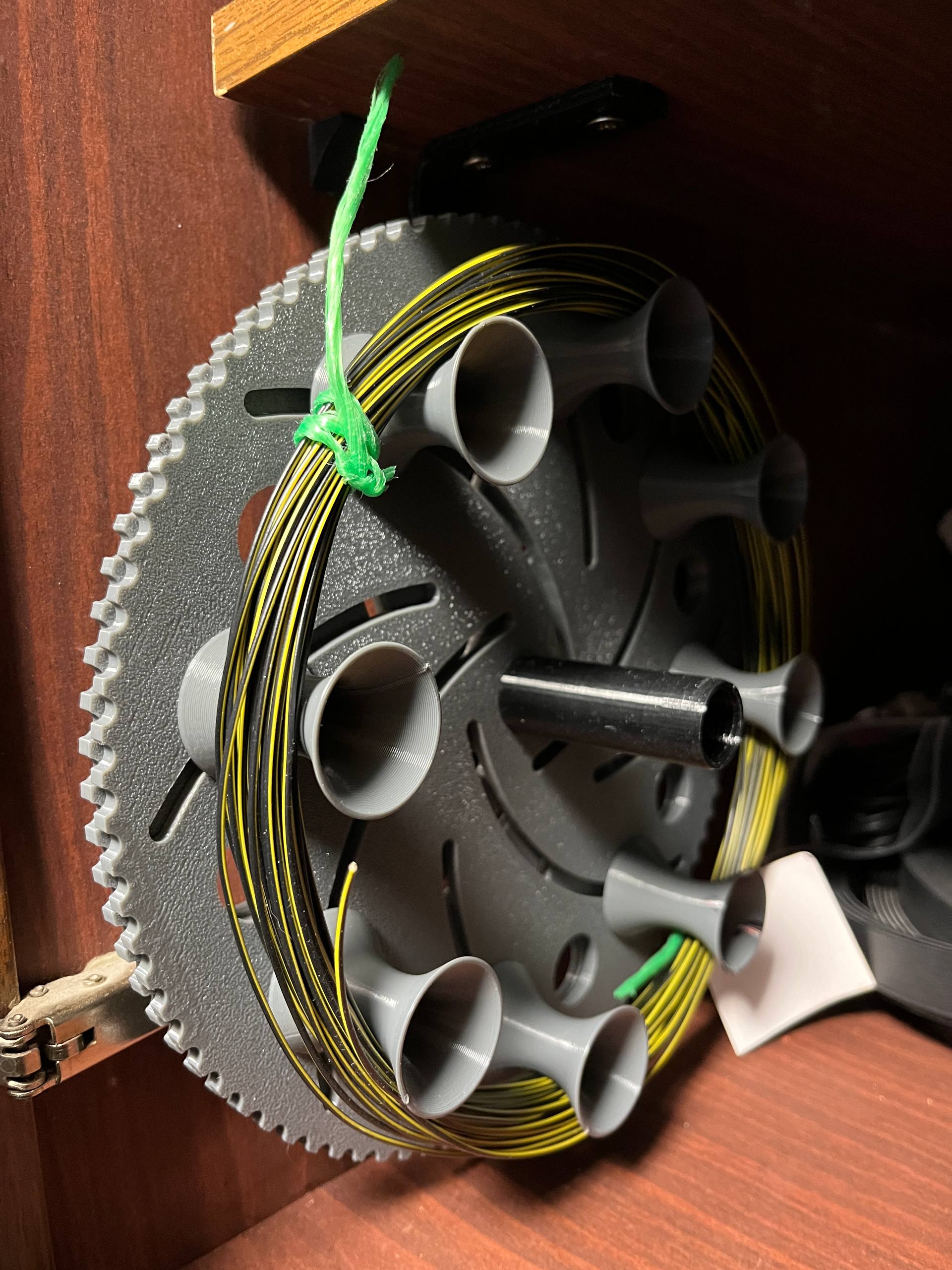 Mình gặp hai vấn đề: vứt bỏ cuộn spool nhựa của filament máy in 3D thì tiếc, còn khi mua dây đồng tính theo mét thì thường không kèm spool (nếu có thì phải trả thêm tiền). Việc gỡ dây từ một cái spool cũng khá bất tiện. Và nếu quấn dây lên một spool sai kích thước rồi cố quấn lại, mọi thứ sẽ bị rối tung. Vì vậy mình làm cái spool này có thể thay đổi kích thước. Về cơ bản nó giống Longworth Chuck. Model này hoàn toàn tùy biến (customizable); bạn chỉ cần đổi các kích thước—đường kính ngoài, đường kính trong, độ dày, v.v.—để hợp với nhu cầu. Mình dùng bu lông M6 cho các ngàm (jaws) điều chỉnh. Ví dụ cách hoạt động: