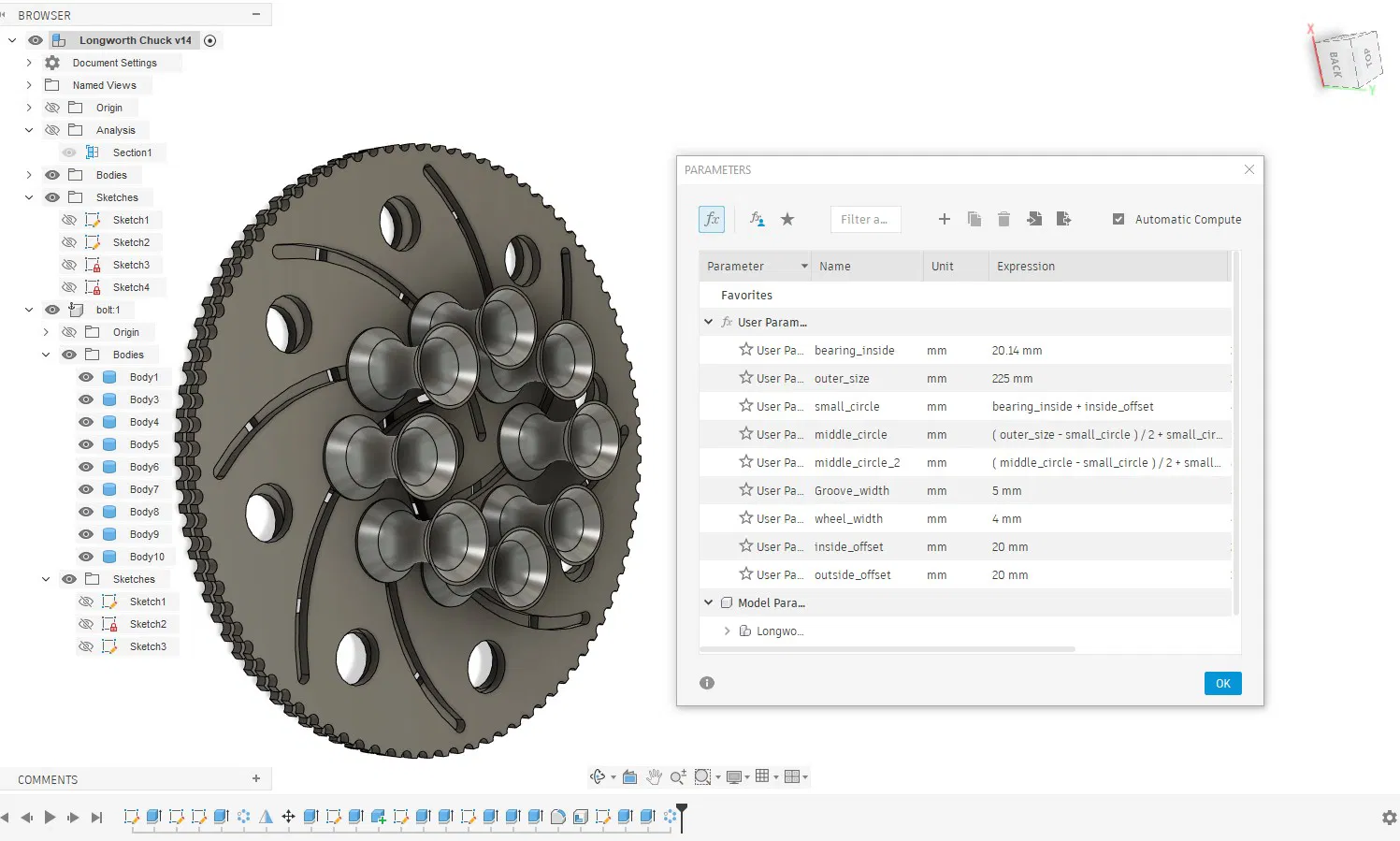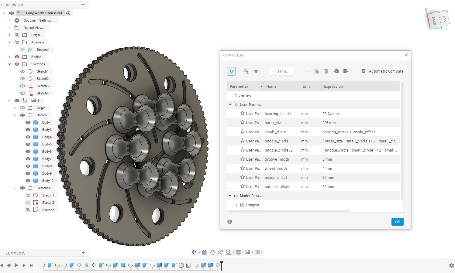 Cuộn quấn dây điều chỉnh được kích thước, dạng parametric cho Fusion 360. Thay đổi outer/inner diameter, độ dày… theo nhu cầu để quấn dây hoặc tận dụng lại spool filament, hạn chế rối dây. Dùng bu lông M6 cho jaws.