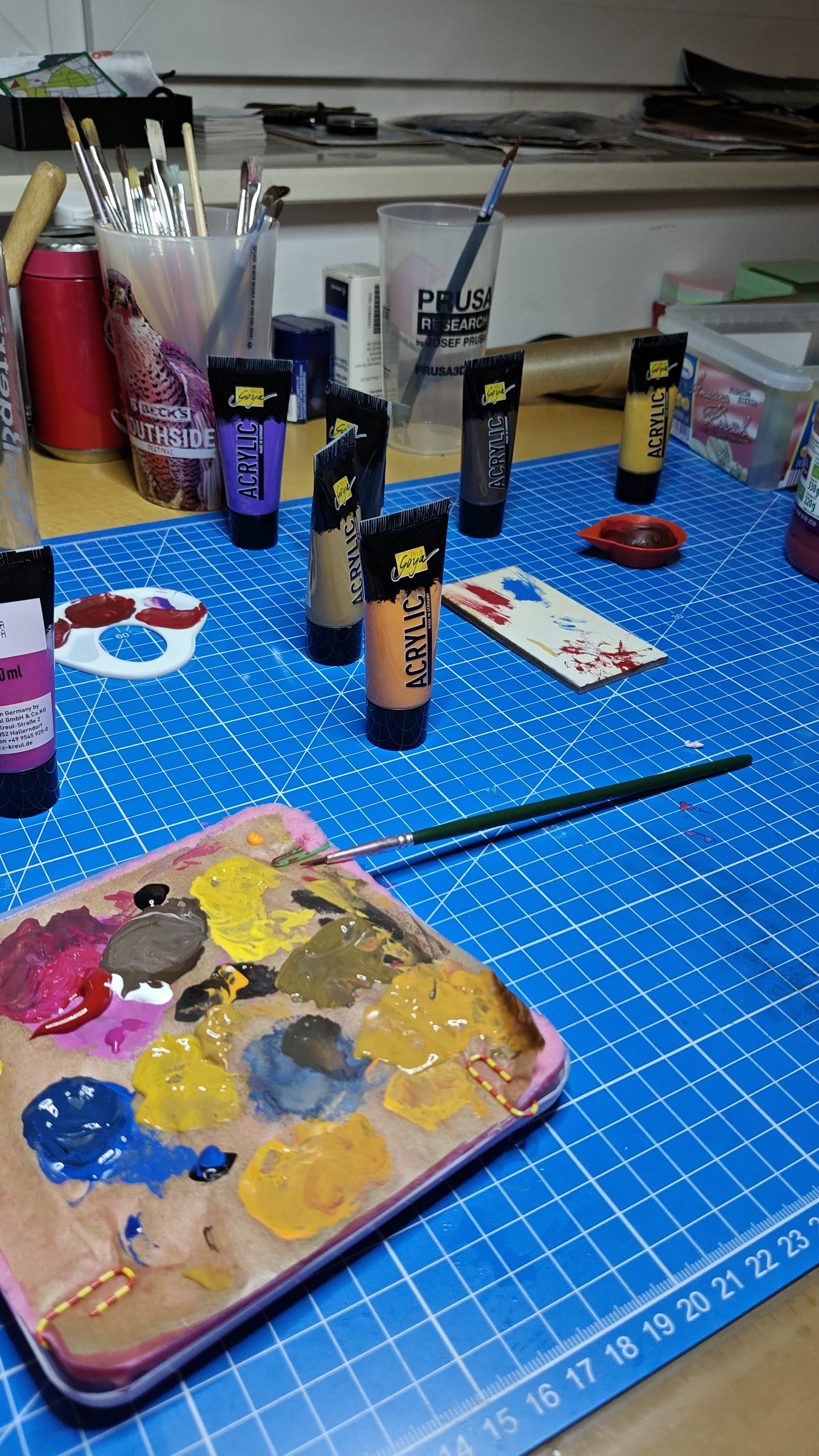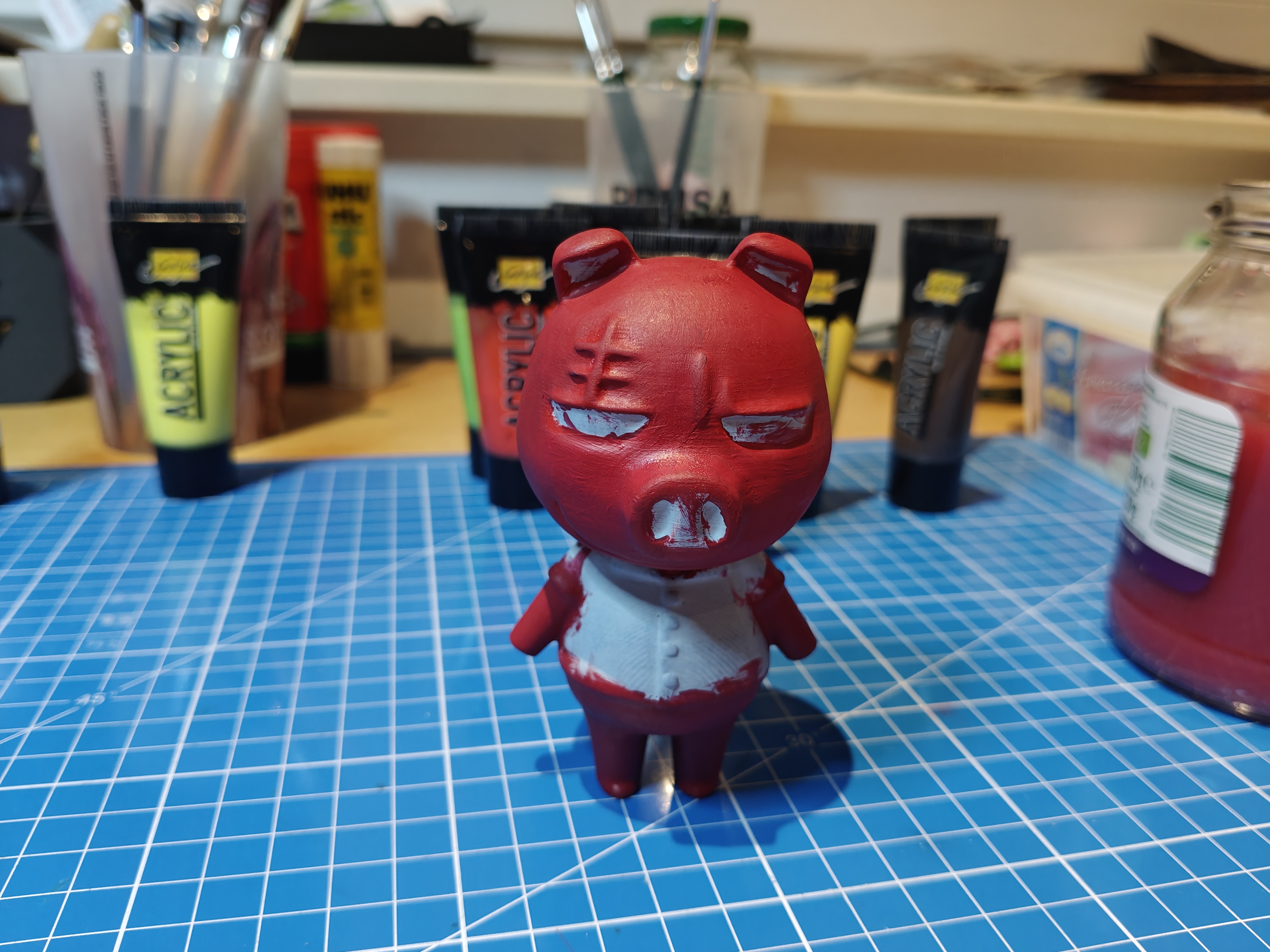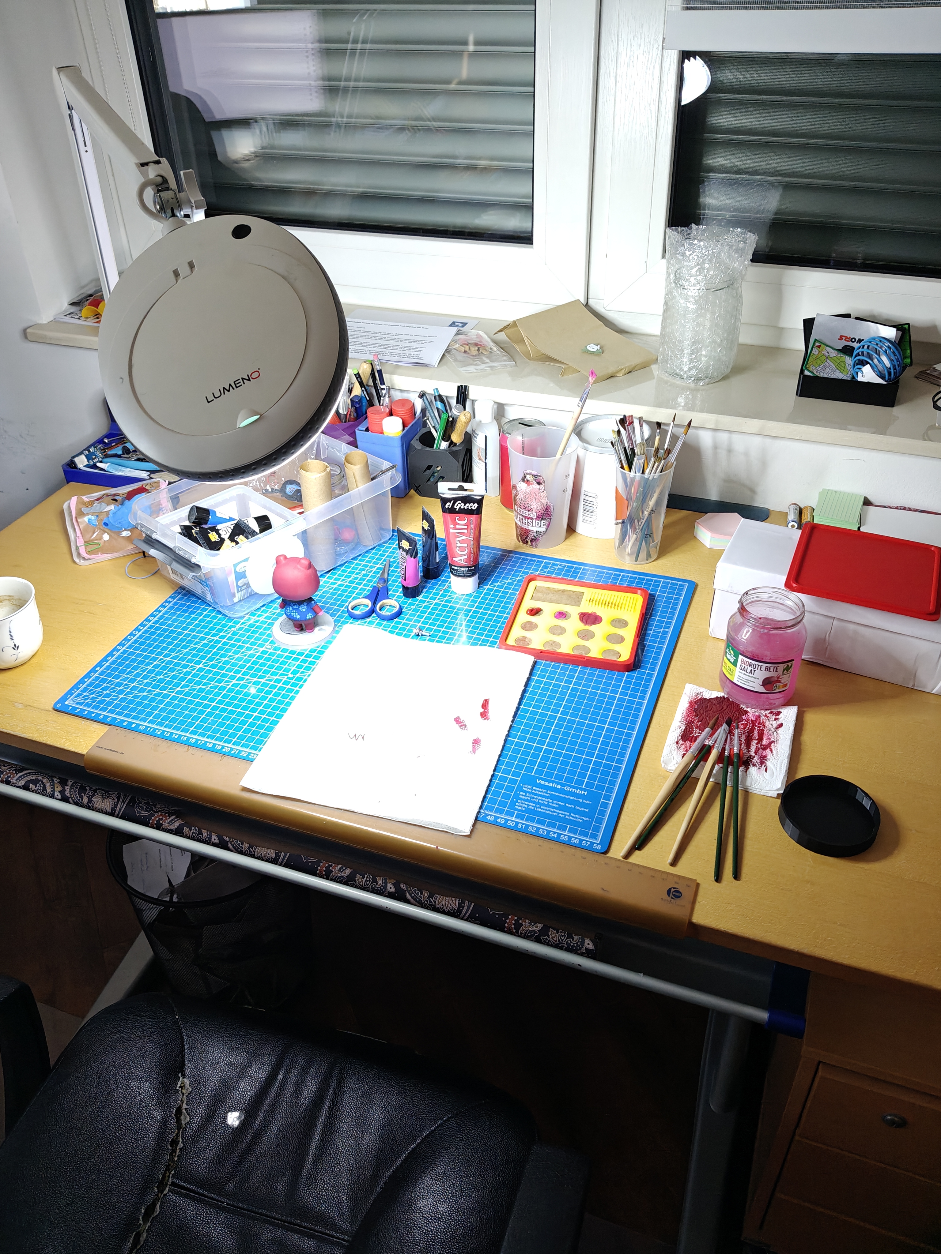 Mình dùng một nguồn sáng tốt để nhìn màu cho đúng. Toàn bộ phần sơn mình dùng acrylic paint.