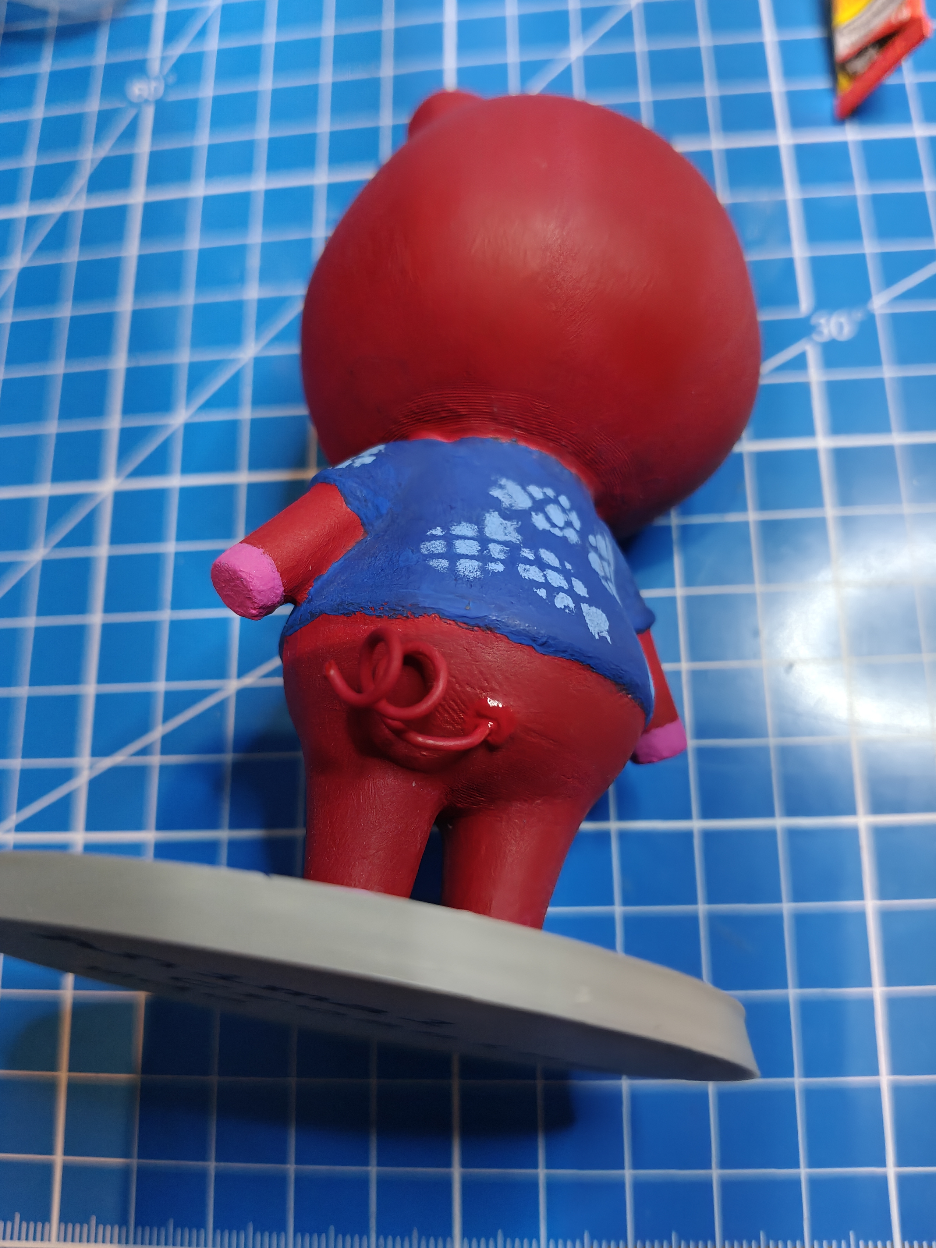 Mô hình Rasher (Ede) từ Animal Crossing do mình tự model, in 3D và sơn acrylic. Có hướng dẫn phối màu, dùng wet palette, làm baseplate 70mm theo nhà New Horizons, gắn đuôi bằng dây điện và trưng trong chai thủy tinh.