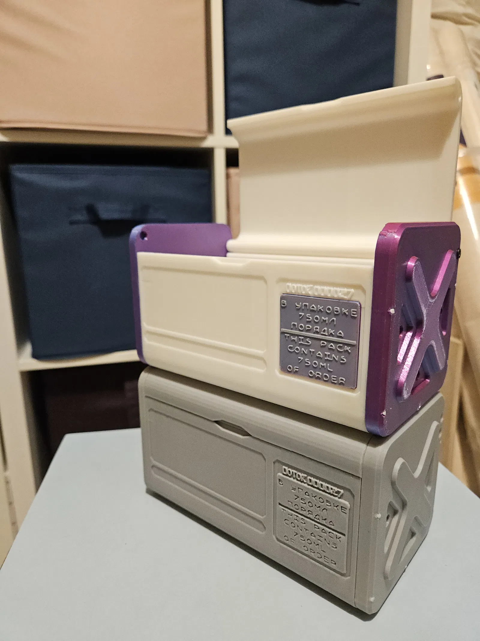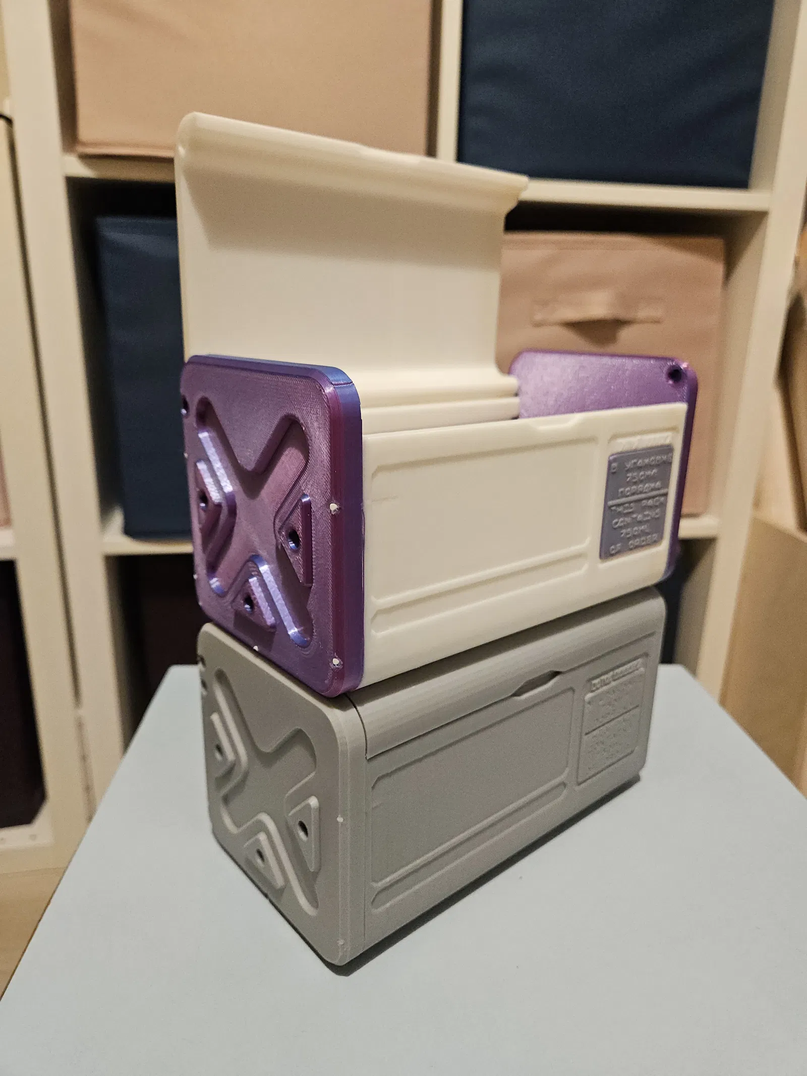Mẫu Stackable Cuberpunk Container là prototype đã test của một hộp phong cách cyberpunk có thể xếp chồng. Thể tích trong 155×85×67 mm, in PLA không cần supports, dùng nam châm d6×3 để khóa và stack.