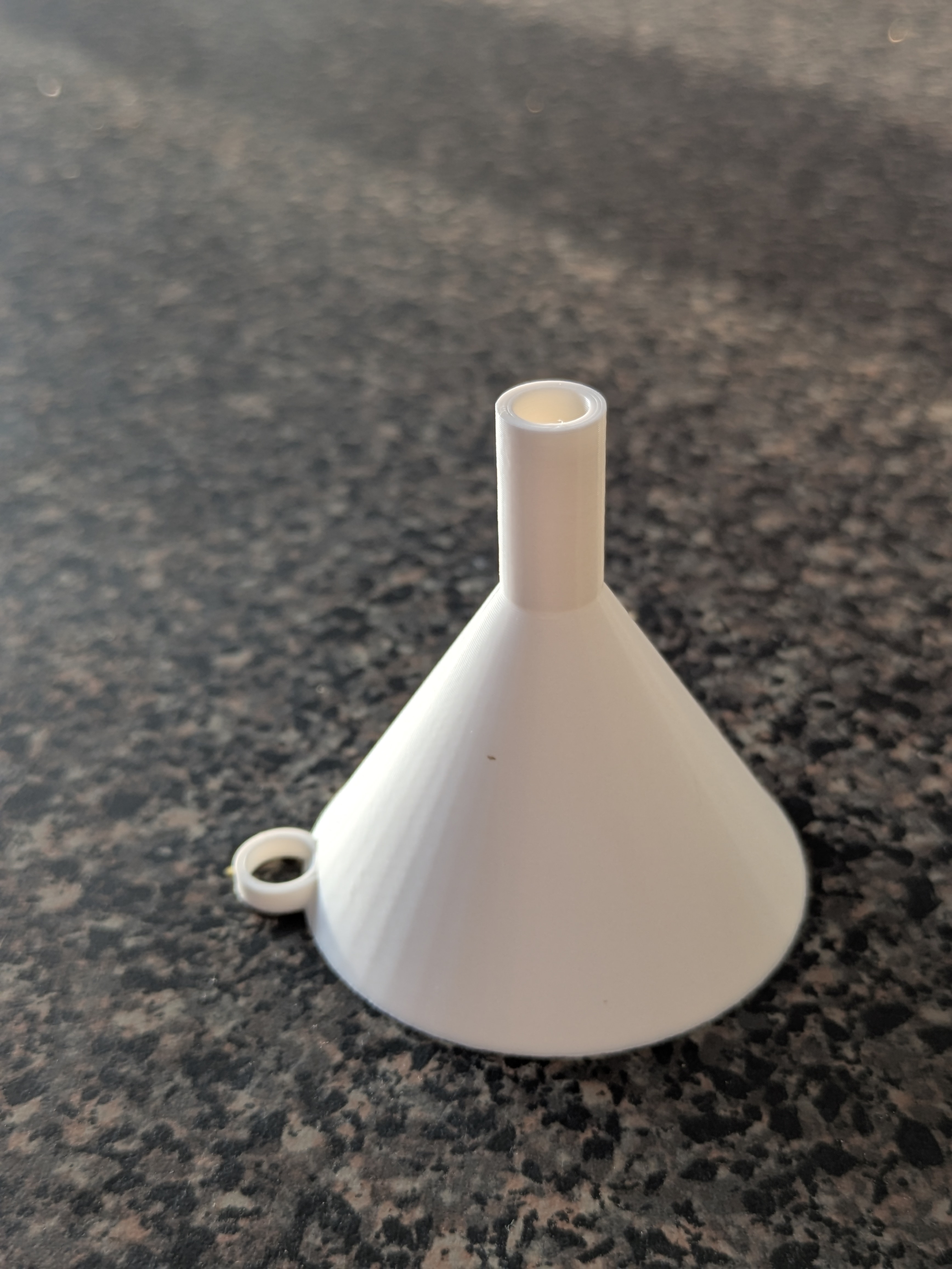 Funnel có OD 54mm ở miệng trên và OD 10mm ở đáy, nên miệng đủ rộng để rót dễ, mà phần dưới vẫn nhỏ gọn để vừa các hũ/lọ nhỏ.