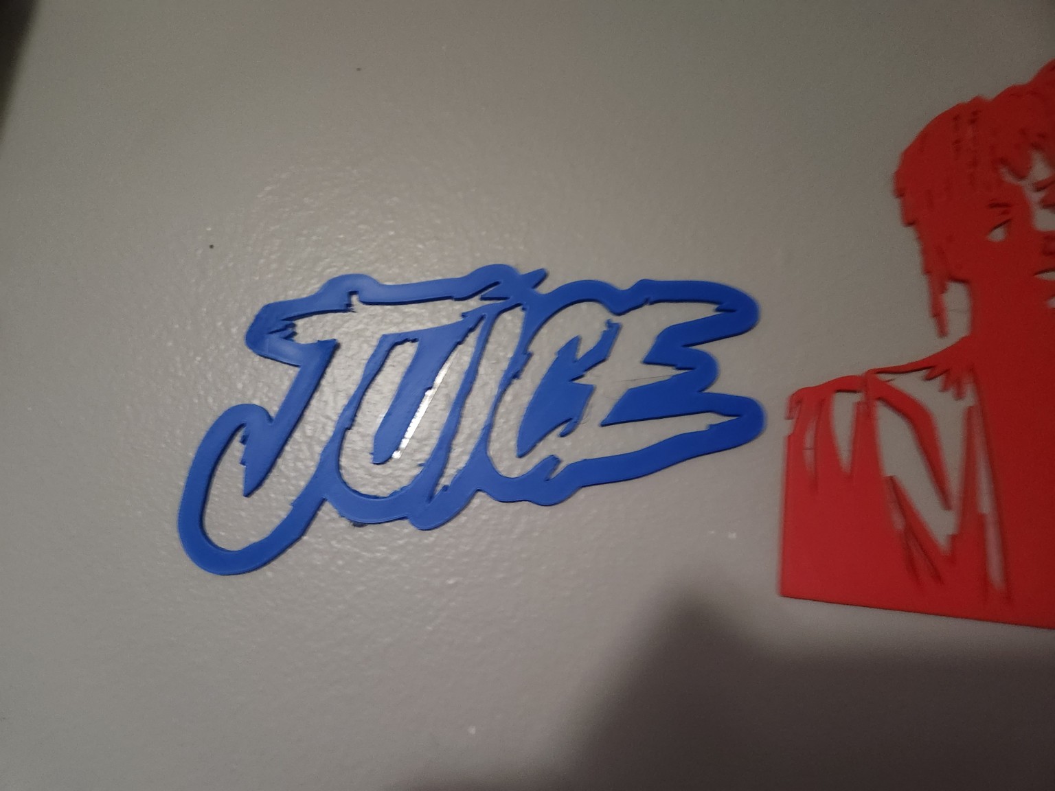 Wall art nhiều lớp lấy cảm hứng từ Juice WRLD: silhouette chân dung + typography “JUICE/WRLD” tương phản cao. Tối ưu gắn phẳng lên tường, in từng mảnh để dễ phối màu. Khuyên dùng PLA, 0.2mm hoặc mịn hơn.
