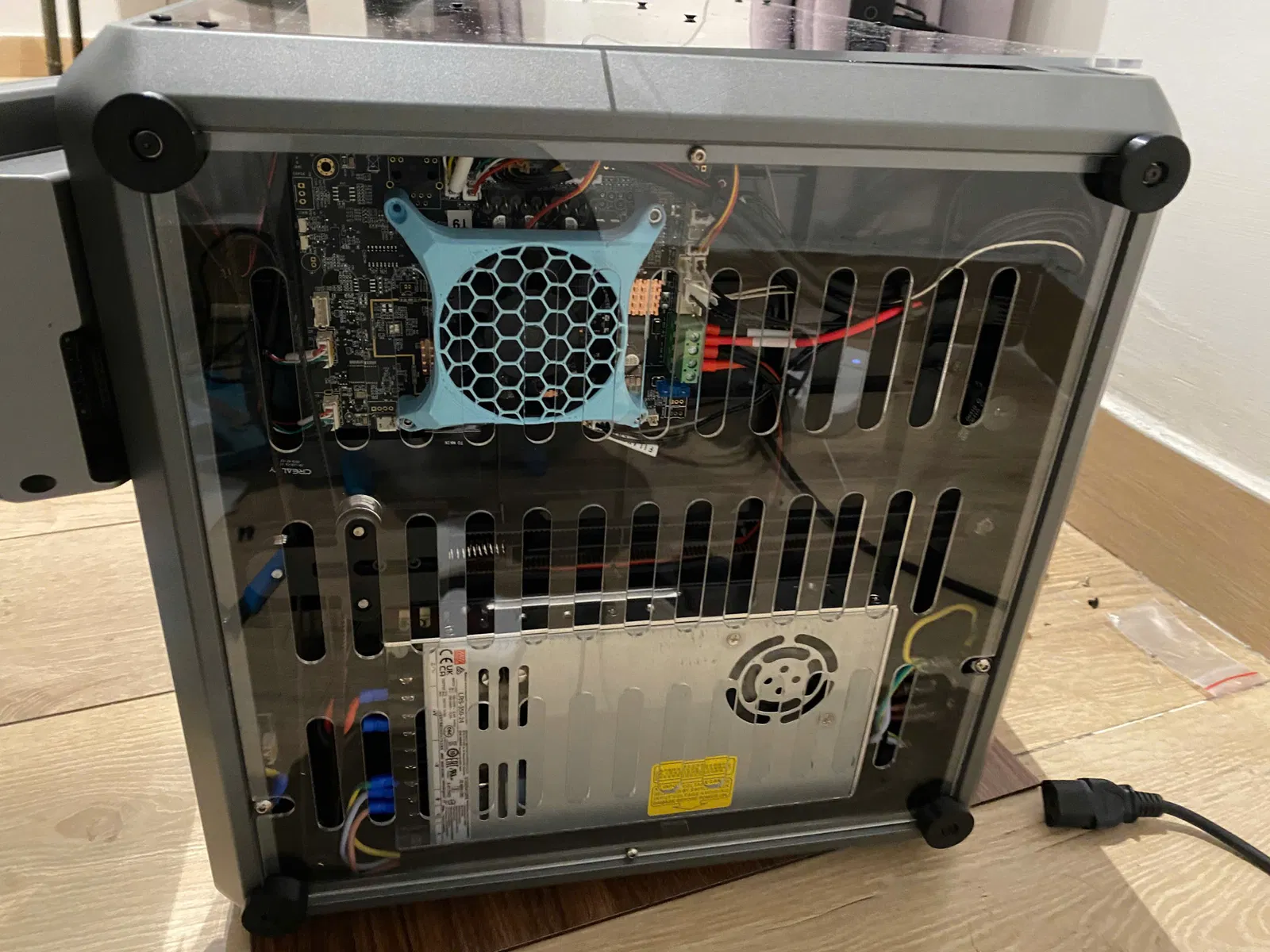 Đây là một nâng cấp mang tính chức năng cho Creality K1, nhắm tới người dùng hay in trong enclosure hoặc môi trường nhiệt độ cao. Phần đáy nhựa đặc nguyên bản thường bị giữ nhiệt, làm các quạt bên trong phải chạy mạnh hơn và ồn hơn.
