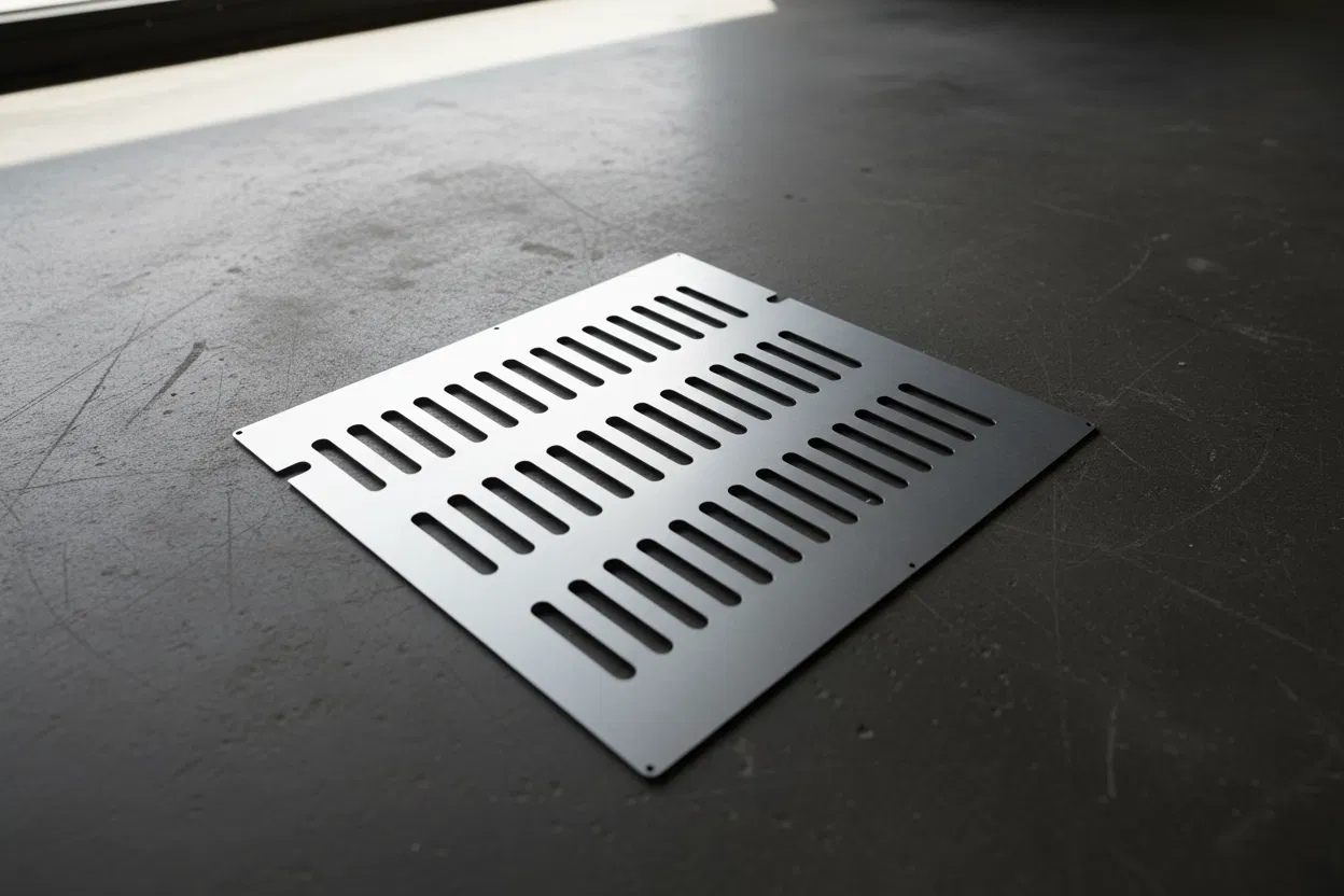 Khuyến nghị vật liệu: Mình khuyên nên cắt laser bằng Inox 304 để tấm không bị cong vênh do nhiệt tỏa lên từ build plate phía trên.