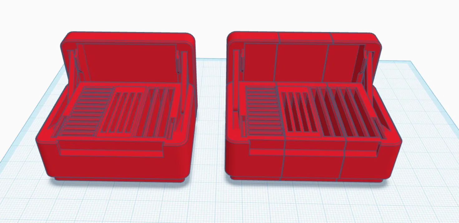 Hộp này là một bản remix nhằm thêm ngăn chứa thẻ XD trong khi vẫn giữ tương thích Gridfinity. Có hai biến thể hộp, cả hai đều có sức chứa 4 thẻ XD. Khác nhau ở phần lưu thẻ SD: bản ngắn có 3 khe và bản dài có 5 khe.