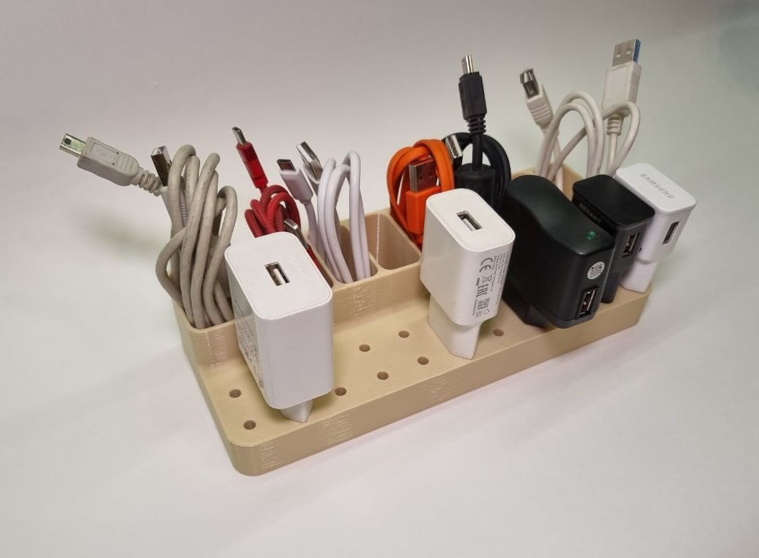Cái organizer này được thiết kế để gom gọn dây cáp và cục sạc lại với nhau. Bạn có thể để tất cả ngay gần bên mà không bị bừa bộn, rối tung lên.