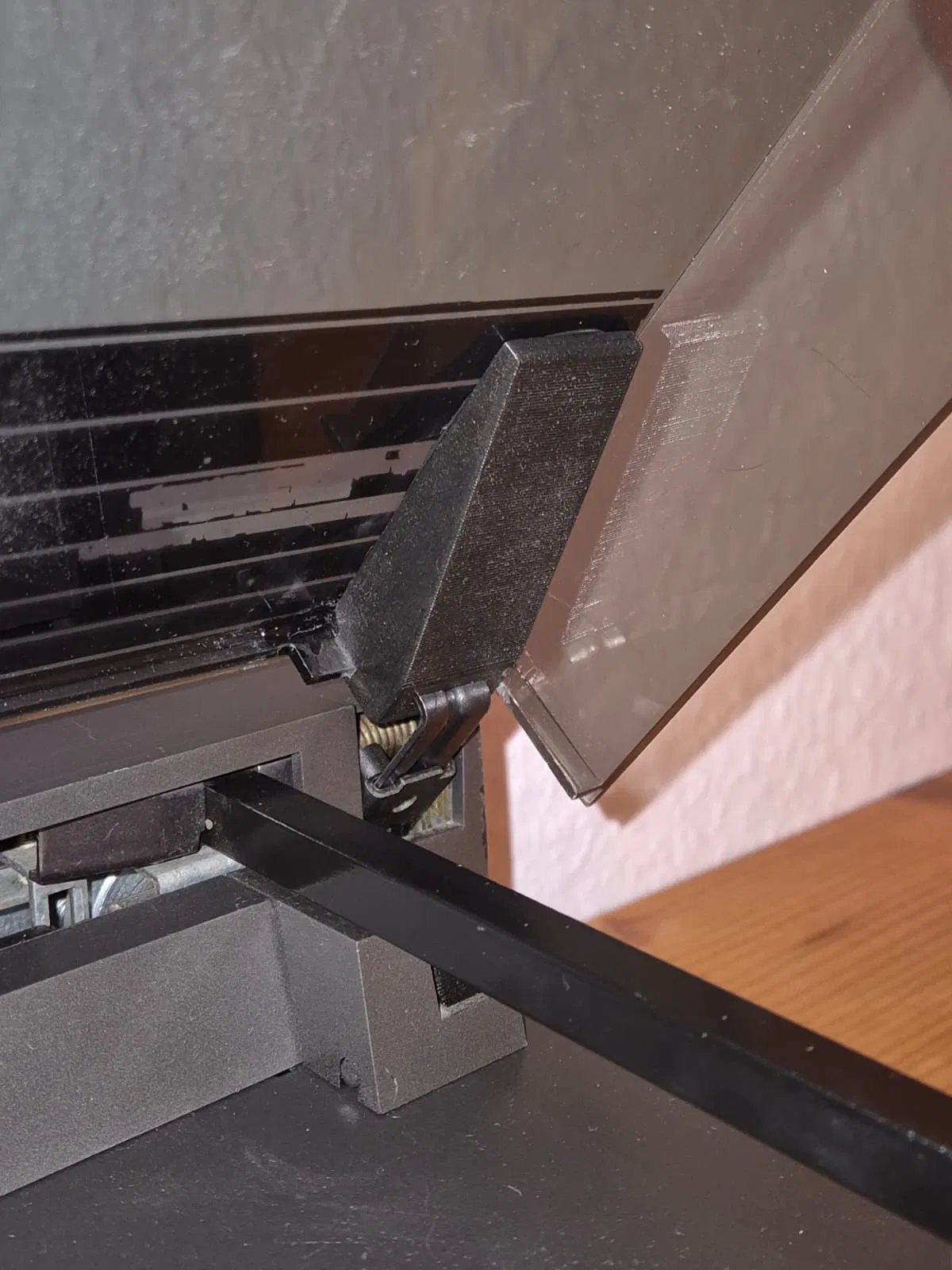 Ngàm bản lề thay thế cho mâm đĩa than Tangential HiFi Direct Drive Turntable RFT HK-PA 1203 khi nắp bị bể. Cắt bỏ ngàm cũ, dán ngàm mới vào; in mirror để dùng cho bên còn lại.
