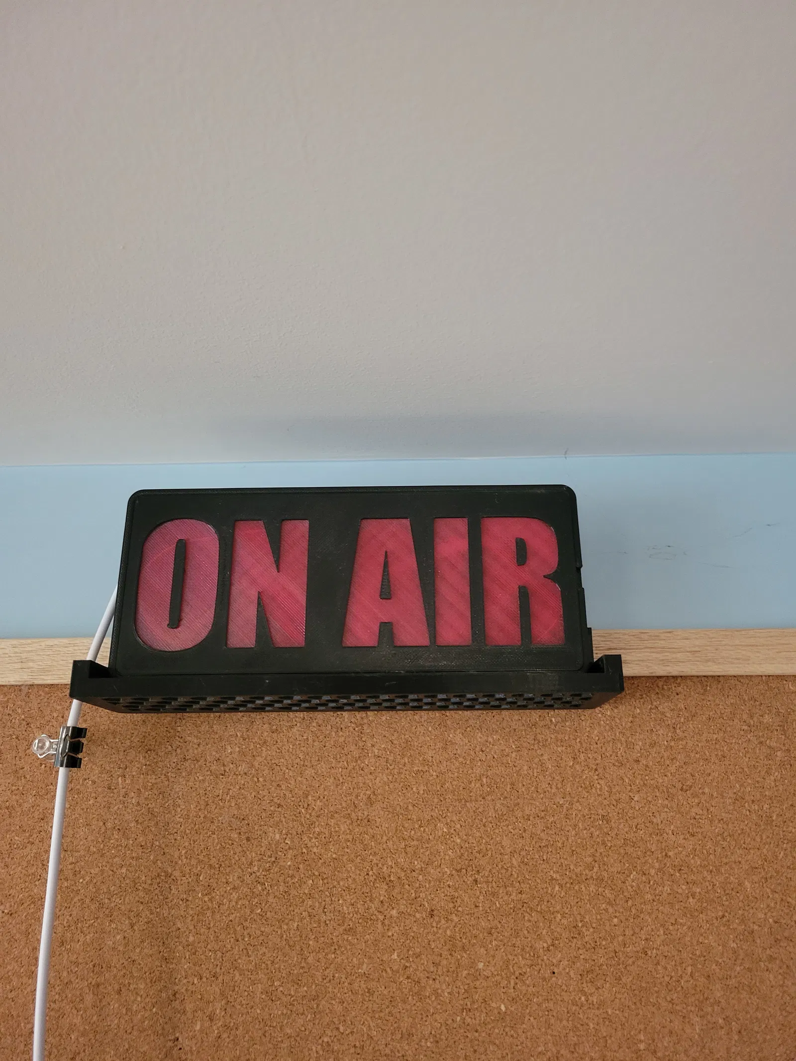 Mình cần một cái kệ nhỏ để kê bảng “On Air” lên bảng ghim (cork board). Cái kệ nhỏ này được thiết kế để giữ đúng loại bảng đó. Ngoài ra cũng có thể dùng để để bút marker ở phía dưới của bảng trắng (whiteboard). Có 2 phiên bản: một mẫu phần mặt trước để hở, mẫu còn lại thì đóng kín.