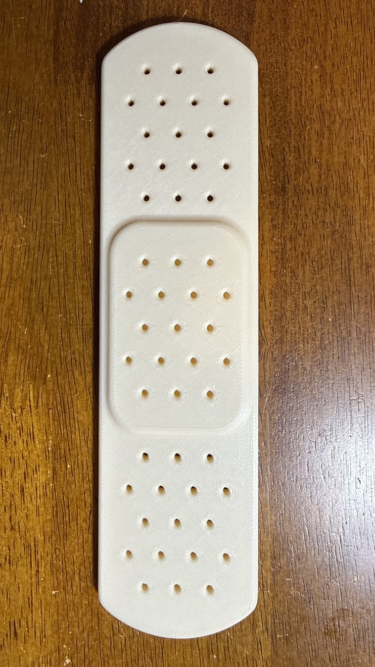 Mẫu Giant Bandaid kích thước 17,5cm, làm để gắn lên một chiếc cúp vui. Không tìm được mẫu phù hợp nên tự dựng. Có thể tách file 3mf thành từng object để in multicolour và in miếng cotton pad màu trắng.