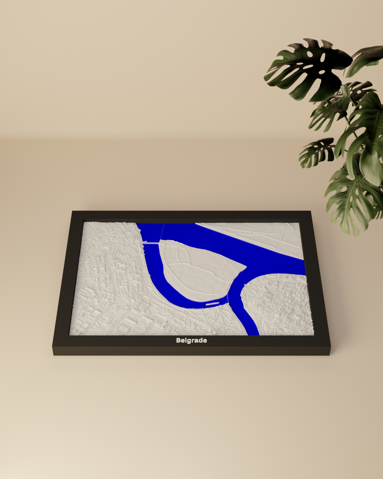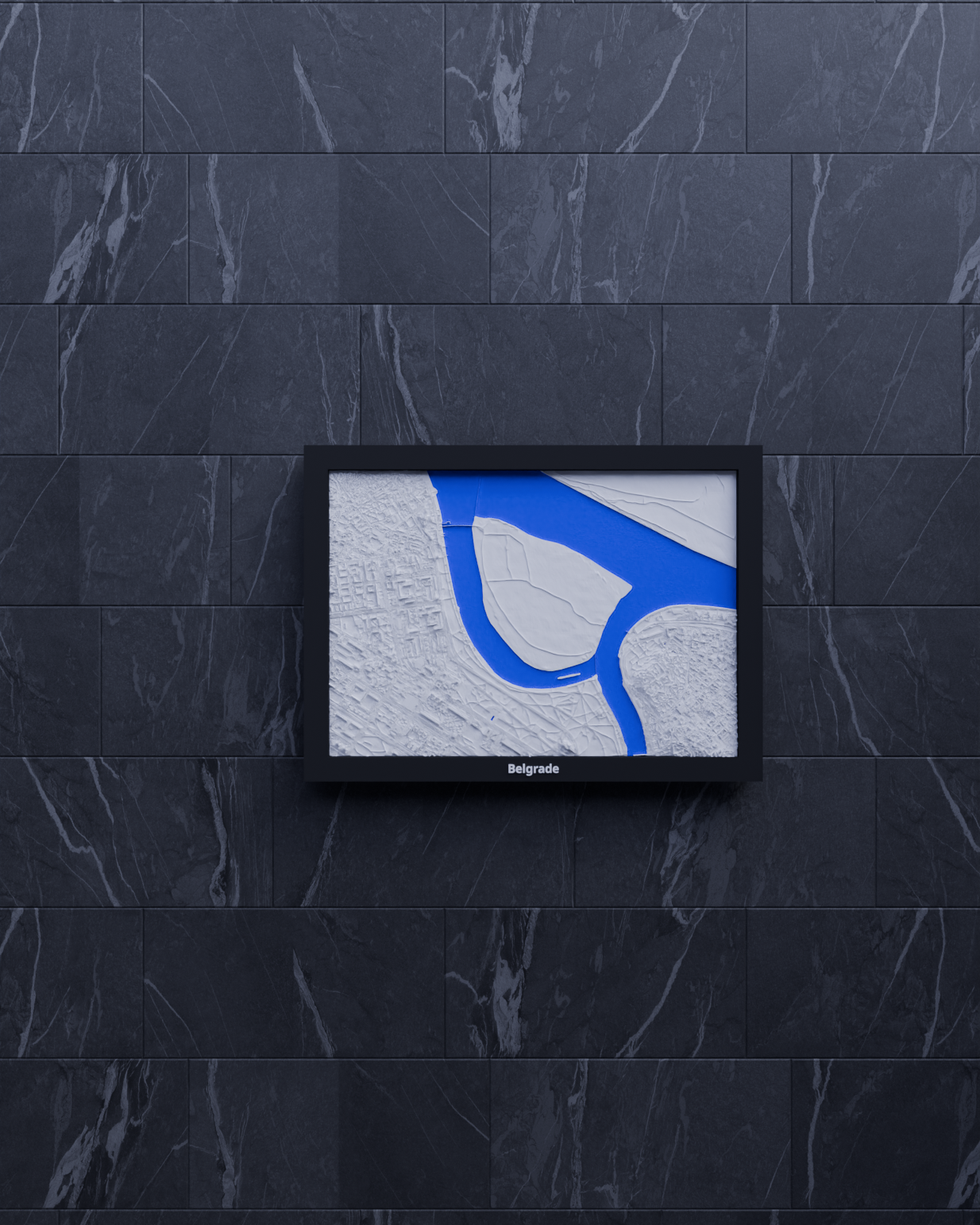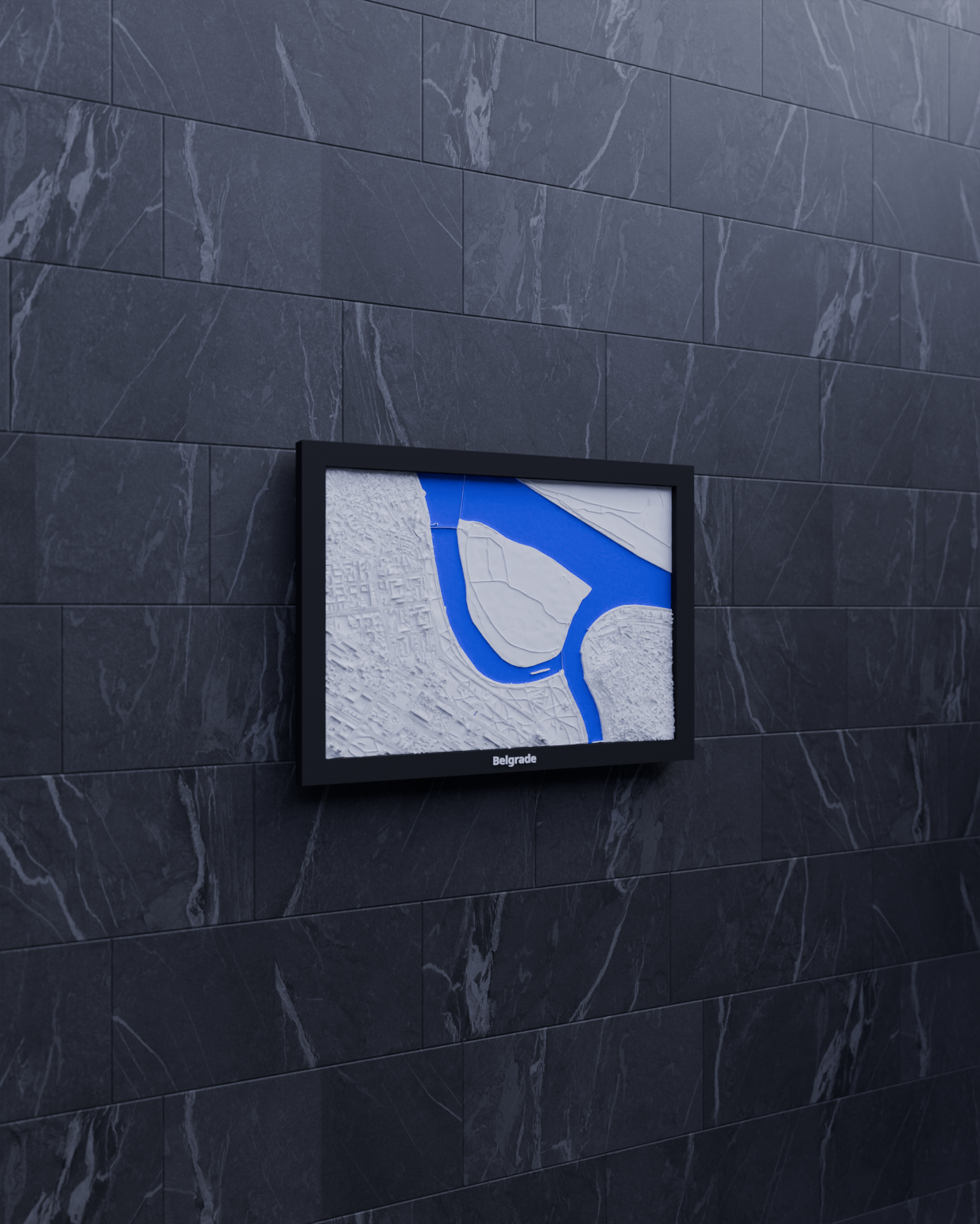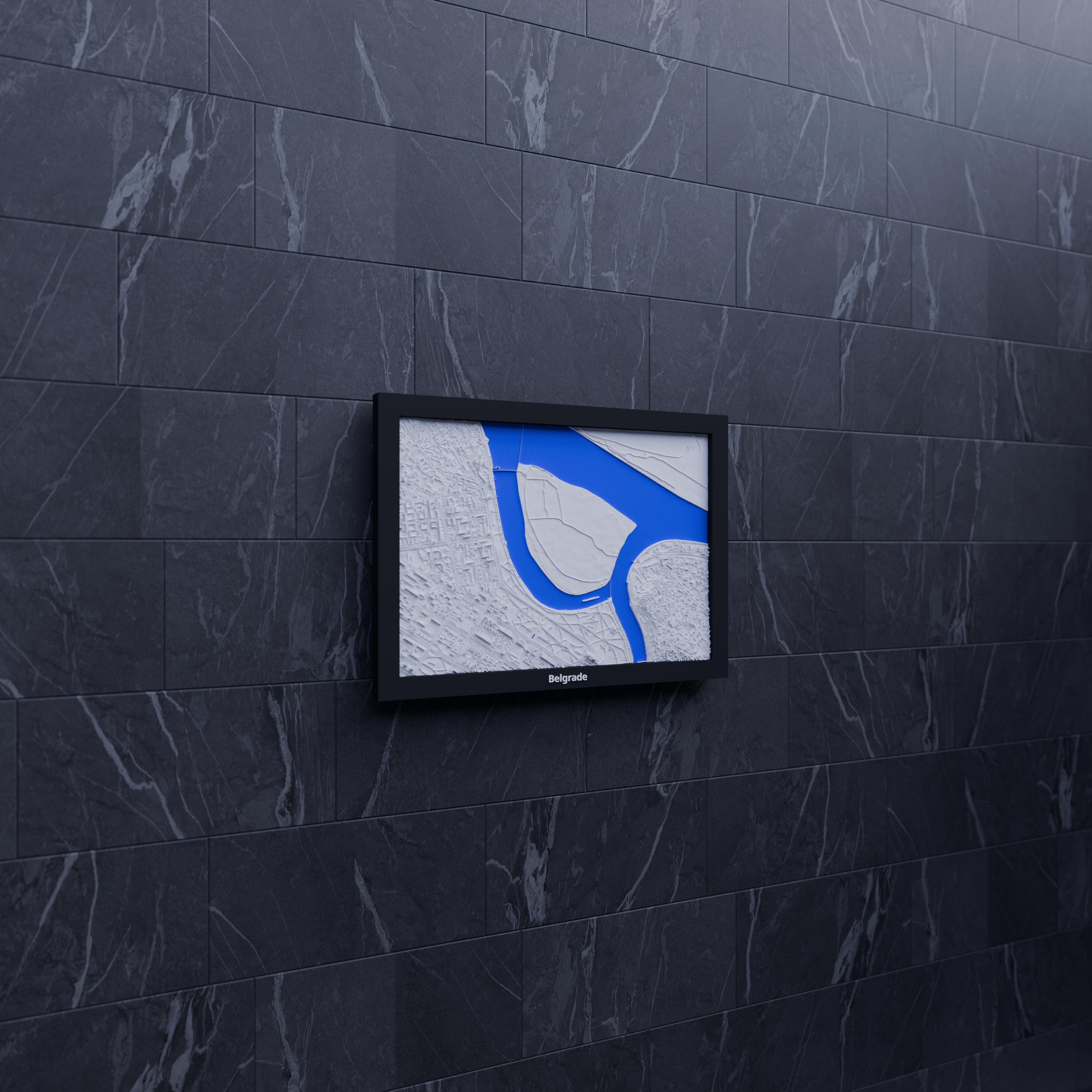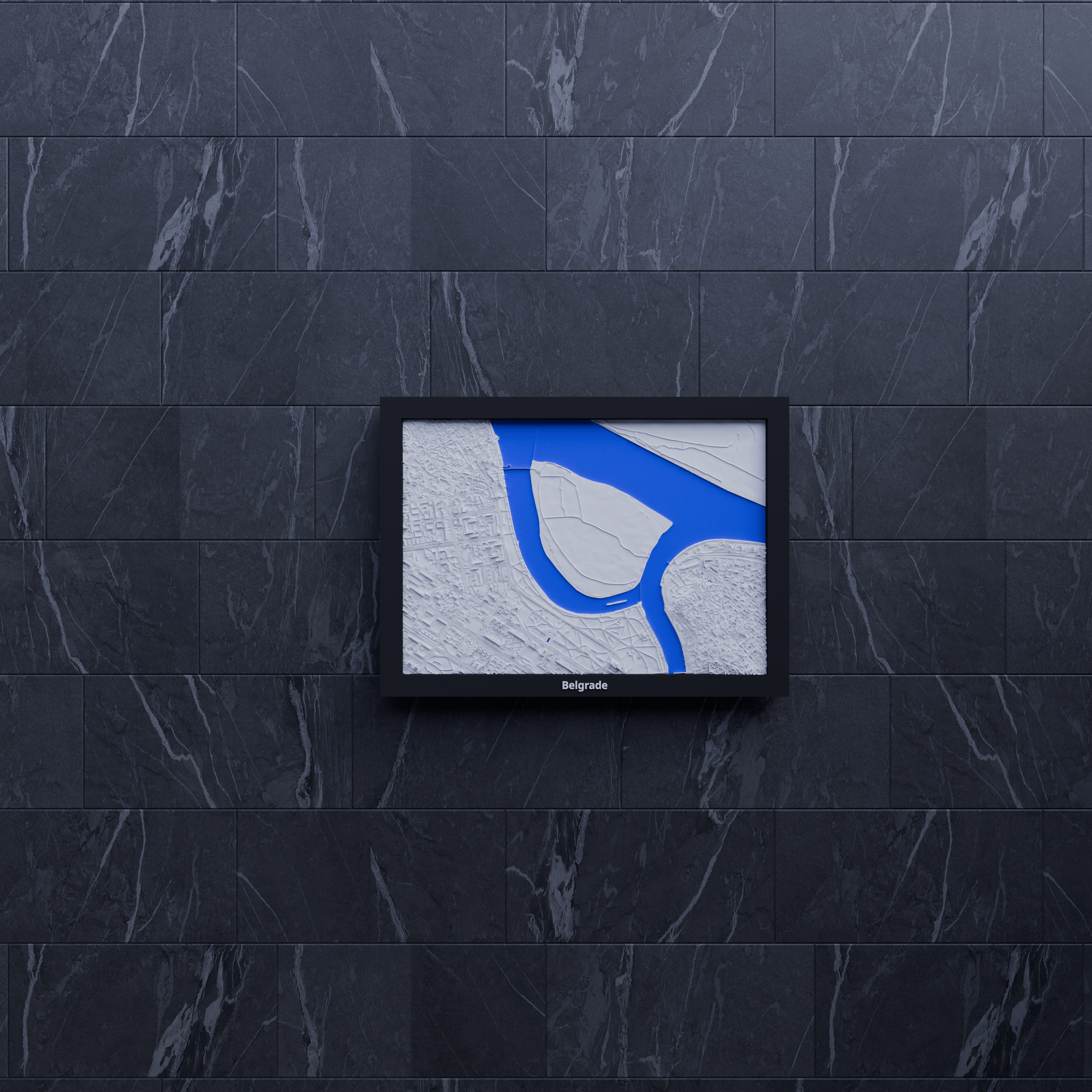 Mô hình topographic miniature Belgrade (Serbia) để in 3D, dựng từ dữ liệu địa lý cho địa hình chân thực. Kích thước in 170.5 × 119.5 mm, có nhiều frame kèm lỗ treo, phù hợp decor hoặc học tập.