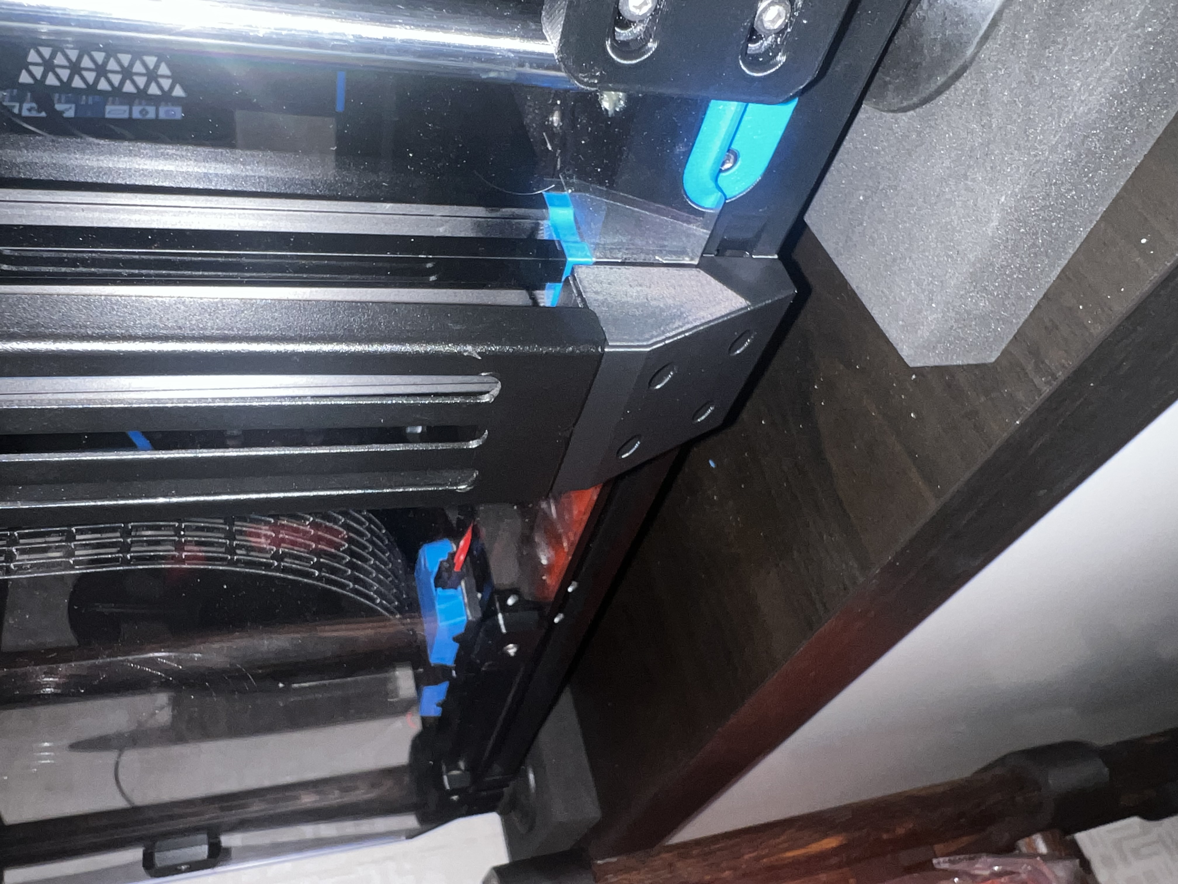 Dùng 3x M3x10 và T-nuts để bắt cái mount lên máy. Dùng 1 trong các lỗ trên để bắt xuyên qua 1 lỗ có sẵn trên panel, và 2 con ốc ở 2 lỗ phía dưới.